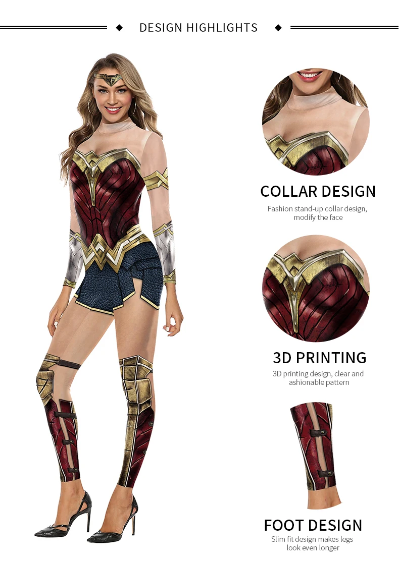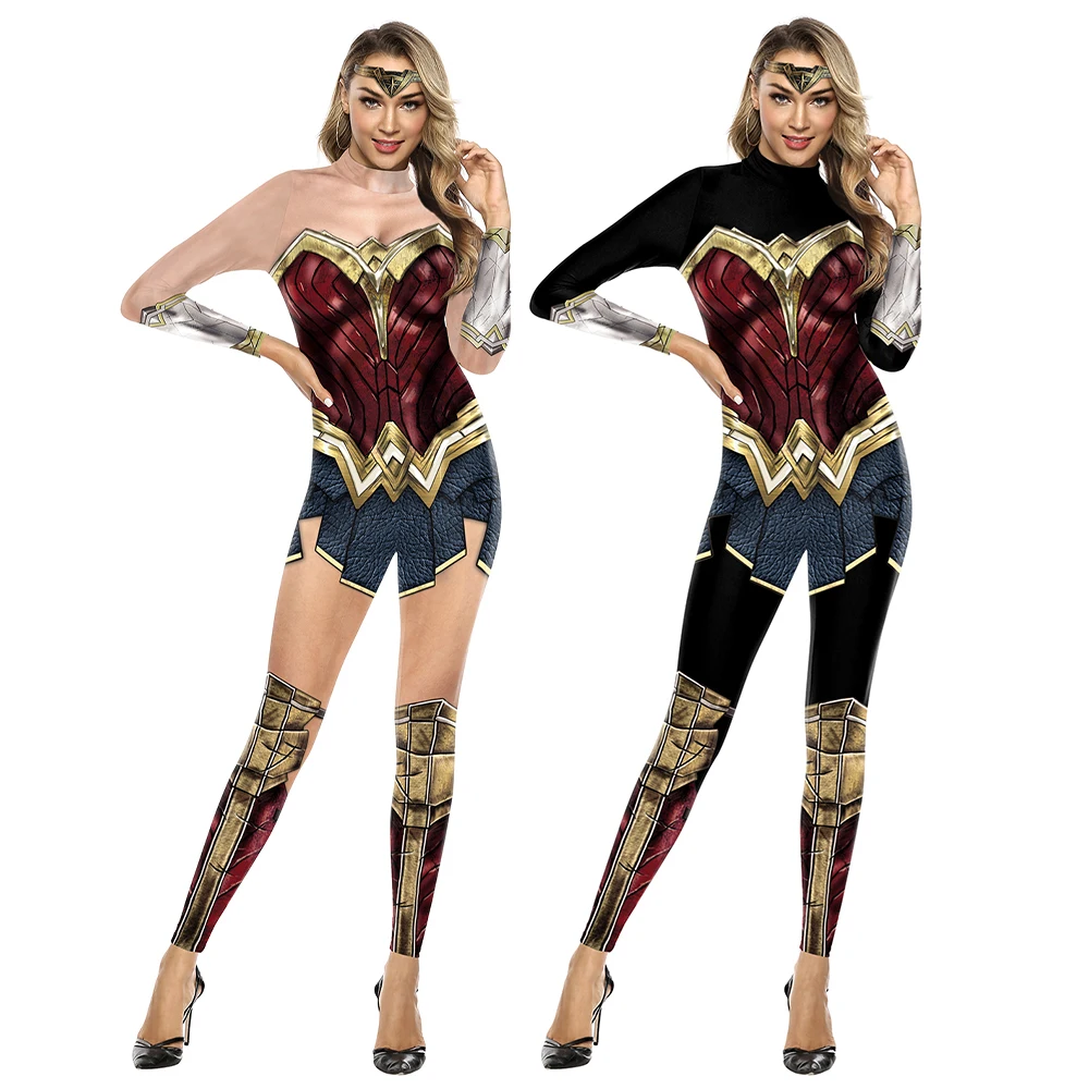 Miniso cosplay filme mulher maravilha traje festa de halloween impressão sexy macacão desempenho palco zentai bodysuit roupas femininas