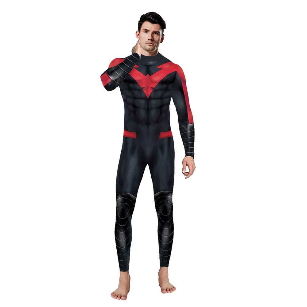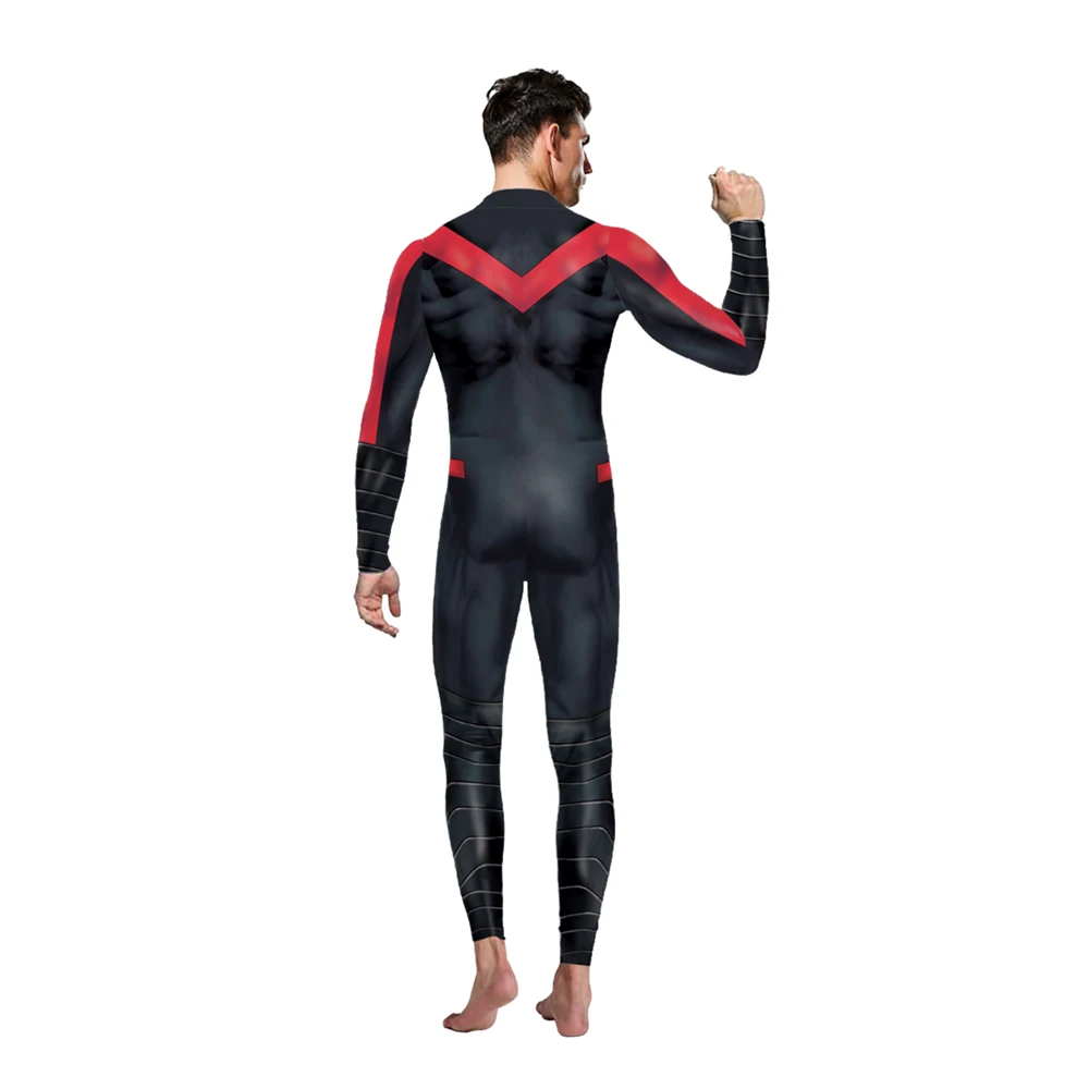 Miniso filme super-herói traje homem zentai bodysuits 3d impresso volta zíper macacão cosplay festa de halloween vestir-se homem roupas