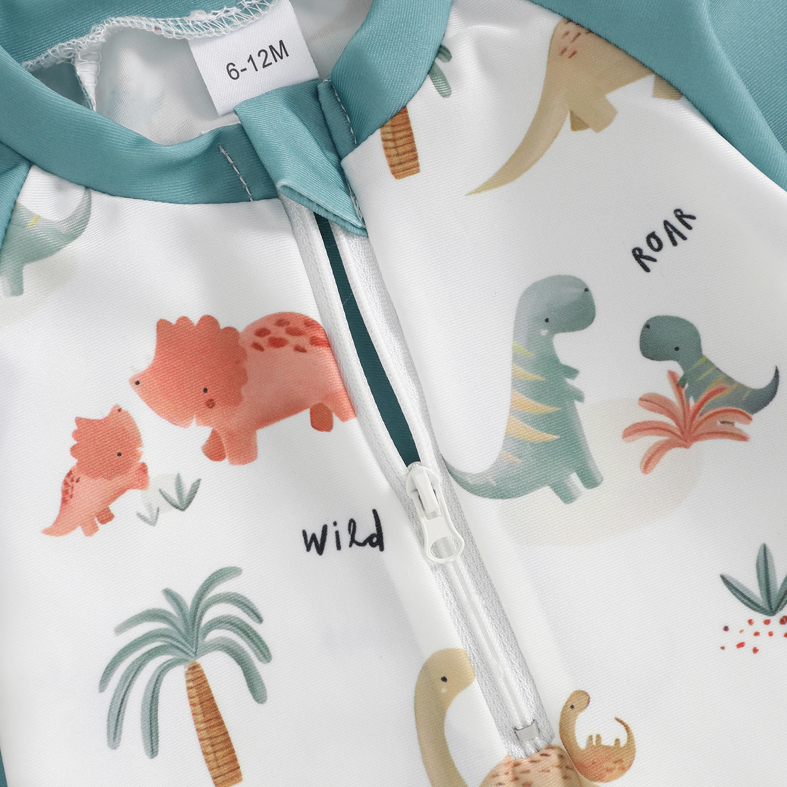 - > Misowmnjoy verão bebê manga longa roupa de banho moda criança meninos rash guard maiô dinossauro impressão zip beachwar com touca de natação