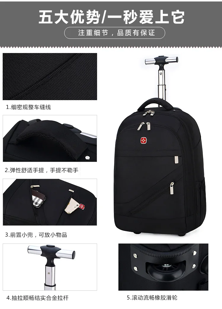 Mochila masculina com rodas, bolsa de viagem com rodas, 24 espaços, bagagem rolante para estudantes, carrinho de negócios, malas de grande capacidade