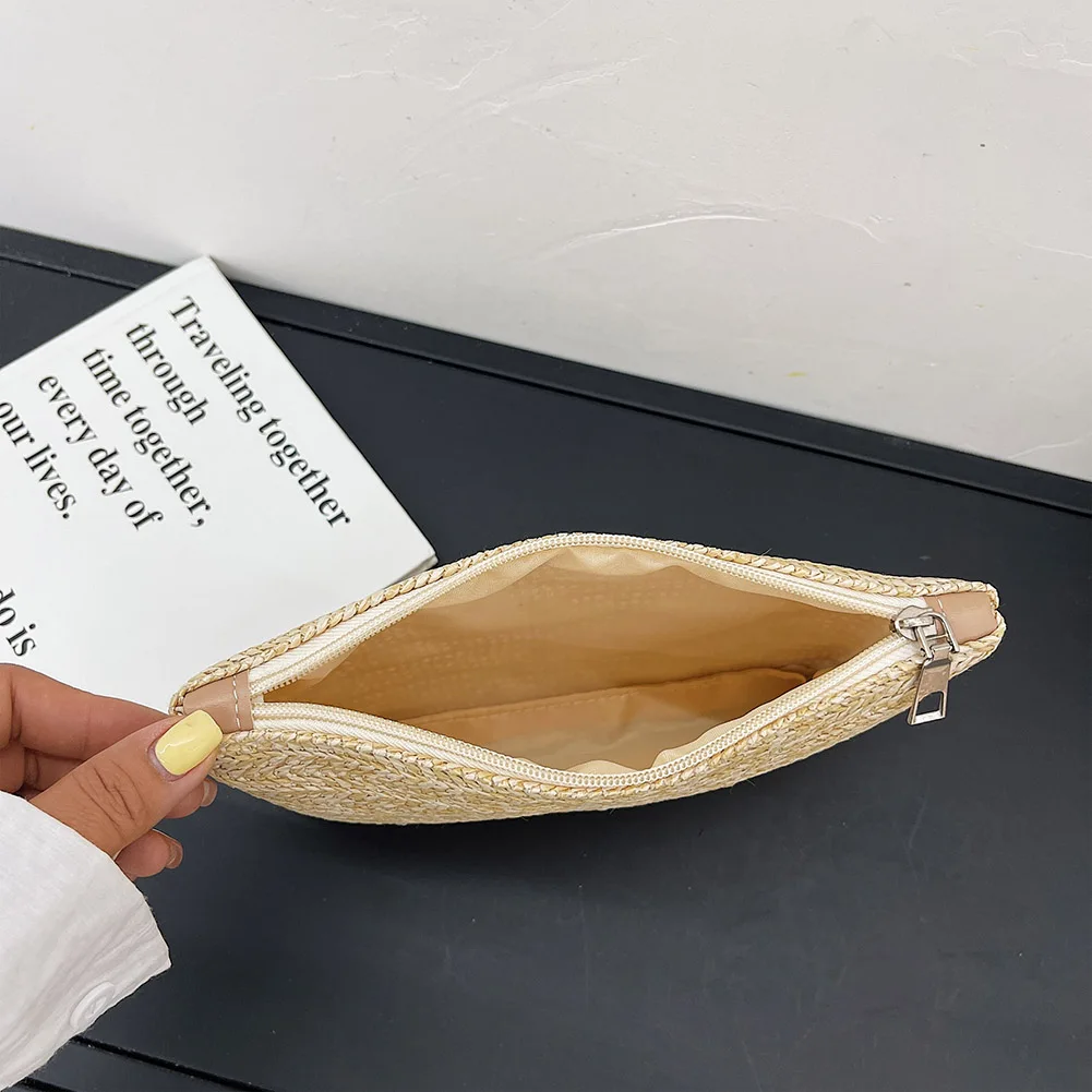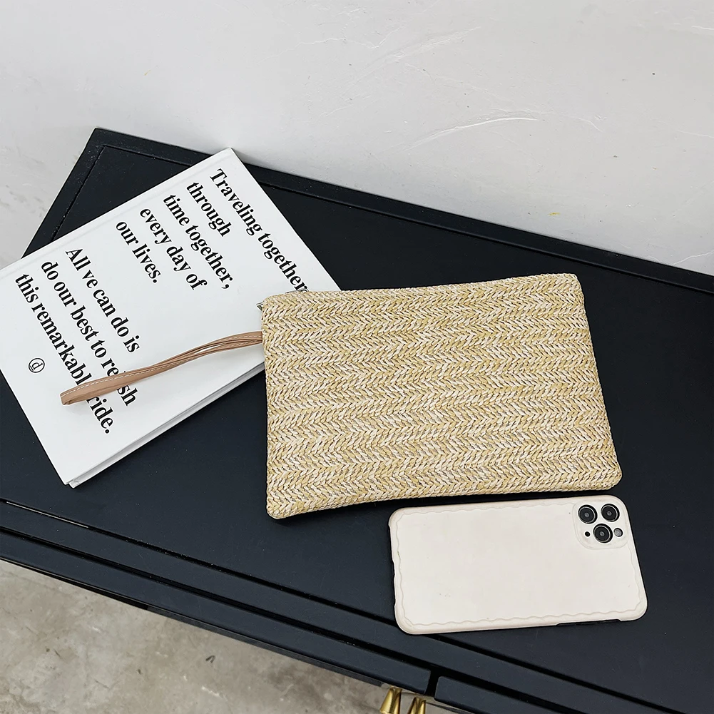 Moda Feminina Bohemian Woven Clutch Wristlet Bag Casual Senhoras Praia Verão Cor Sólida Pequenas Bolsas Bolsa