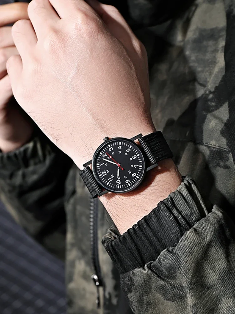 - > Moda masculina relógios luminosos banda de náilon relógio masculino náilon tecido cinta lazer esportes quartzo esportes resistente ao choque relógios de pulso