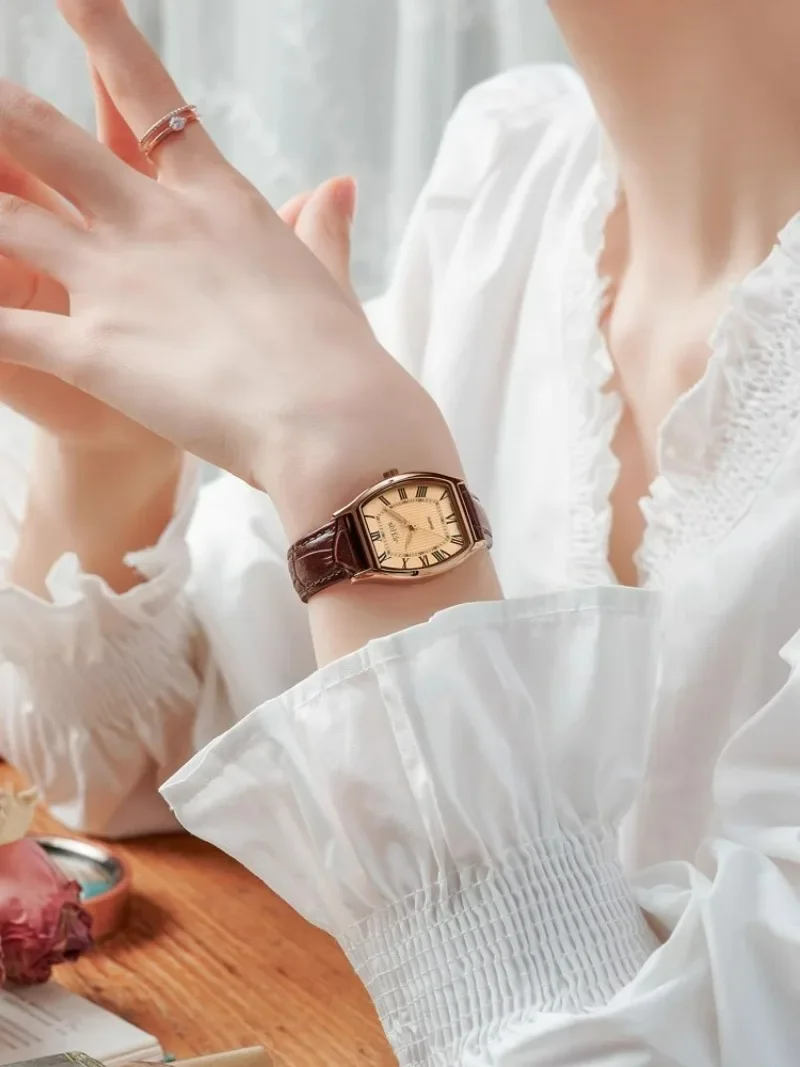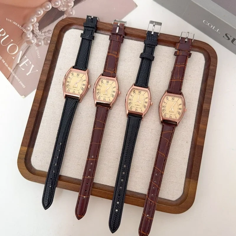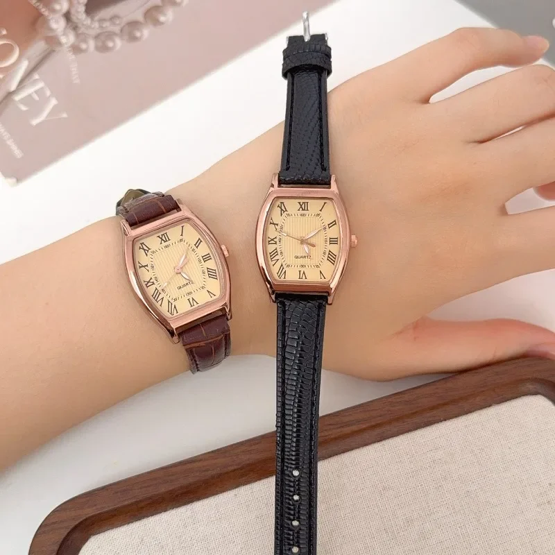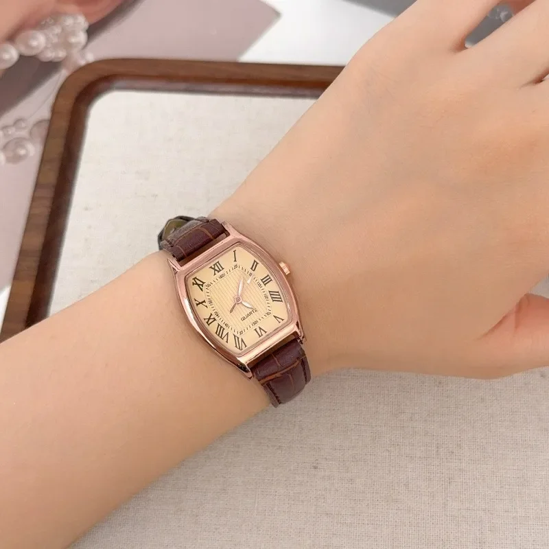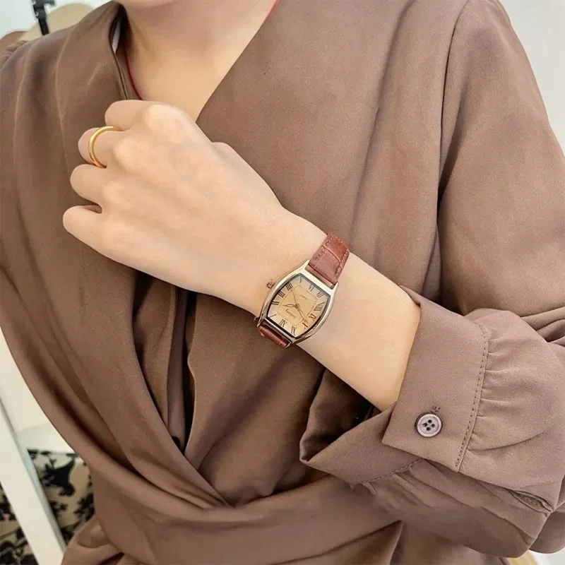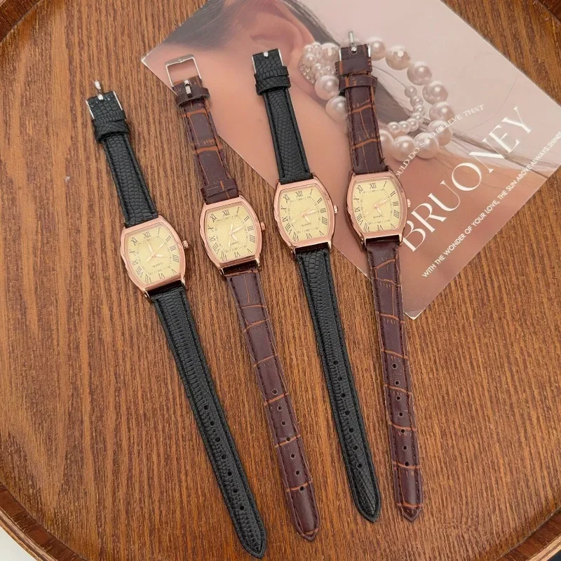 Moda negócios relógio para mulheres pequenas senhoras relógios de pulso marrom retro vintage pulseira de couro relógio de pulso de quartzo preto