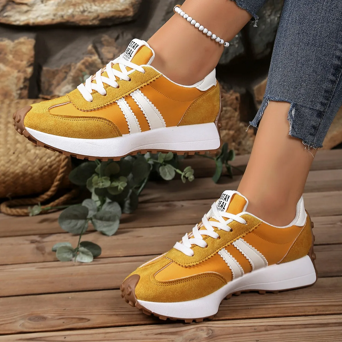 - > Moda novo estilo elegante rendas até sapatos casuais femininos primavera/outono dedo do pé redondo sola grossa anti deslizamento sapatos esportivos confortáveis