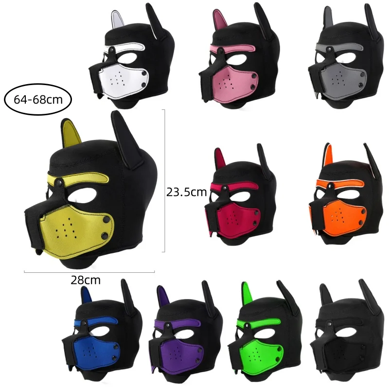 Moda unissex sexy trajes látex boca aberta cão chapelaria halloween filhote de cachorro jogar festa casais jogos rosto cheio fetiche máscaras capuz