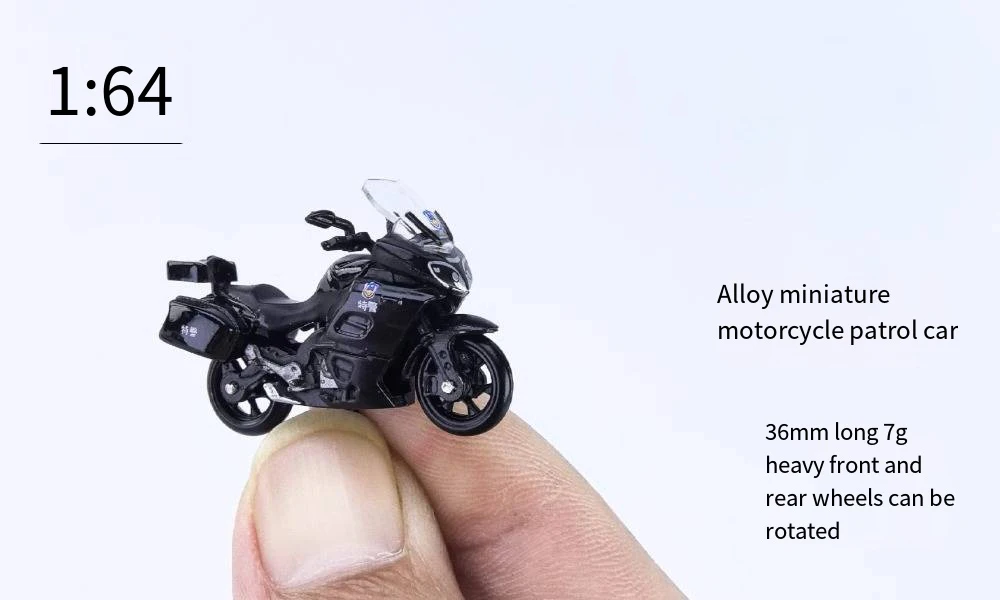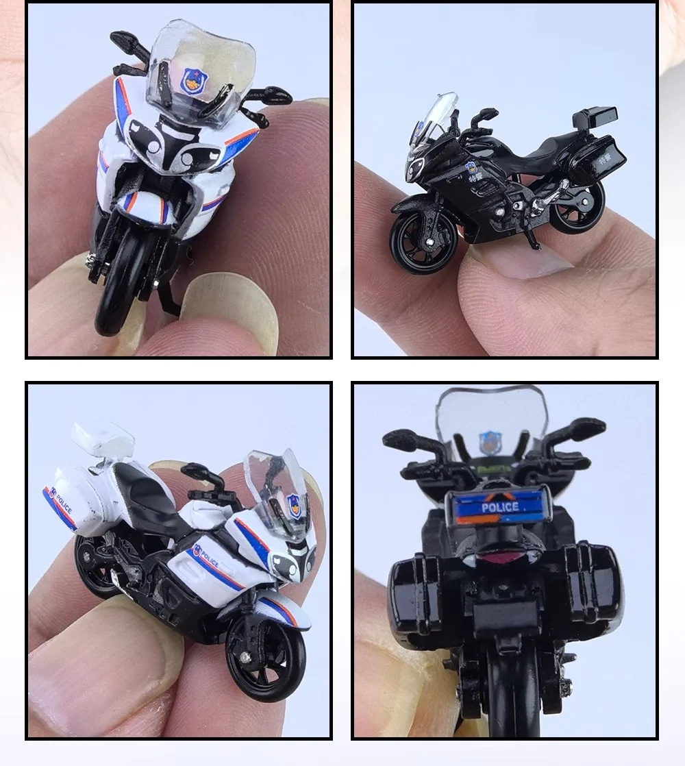 Modelo de motocicleta em liga metálica 1/64, modelo fundido, segurança pública, móveis especiais de polícia para exibição, presente de aniversário infantil