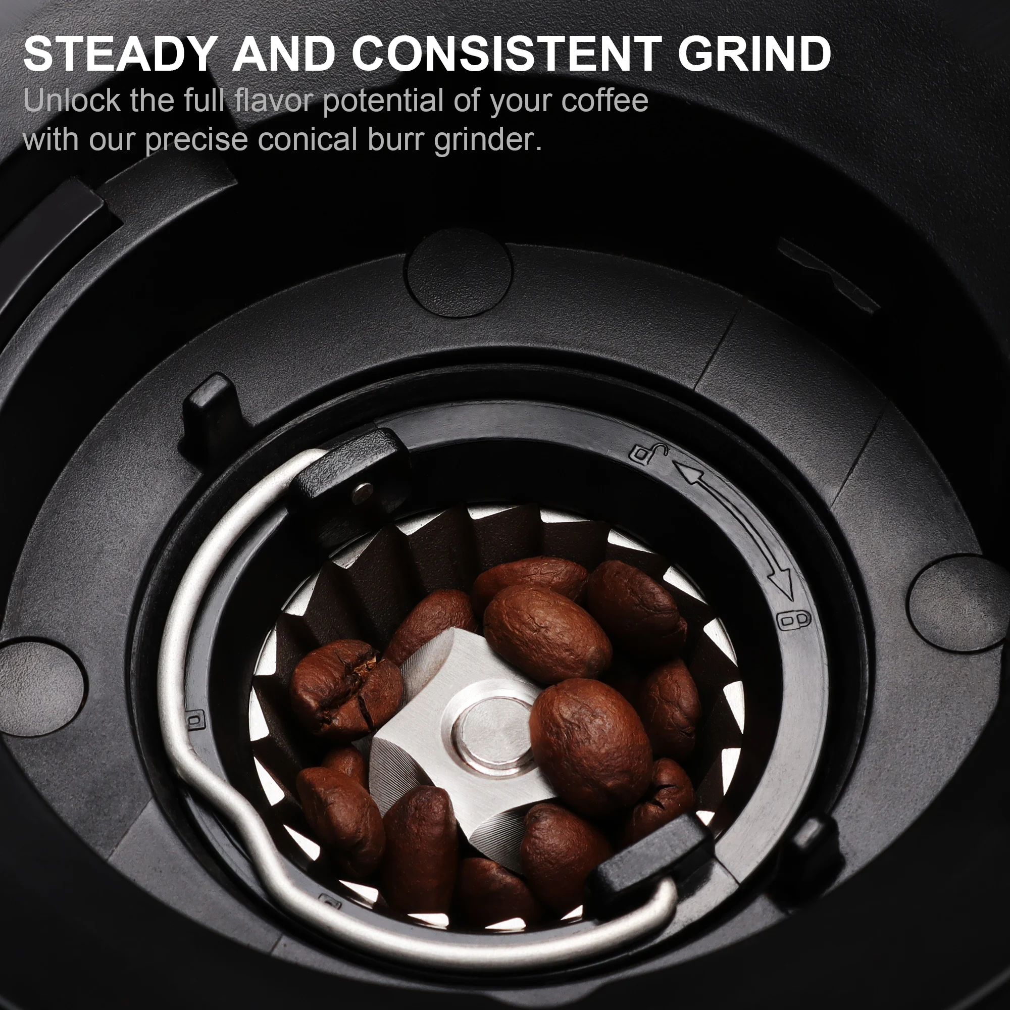 【30 configurações de moagem precisas 】 - 30 configurações de moagem precisas, desde o expresso mais fino até o moedor de prensa francesa mais grosso.