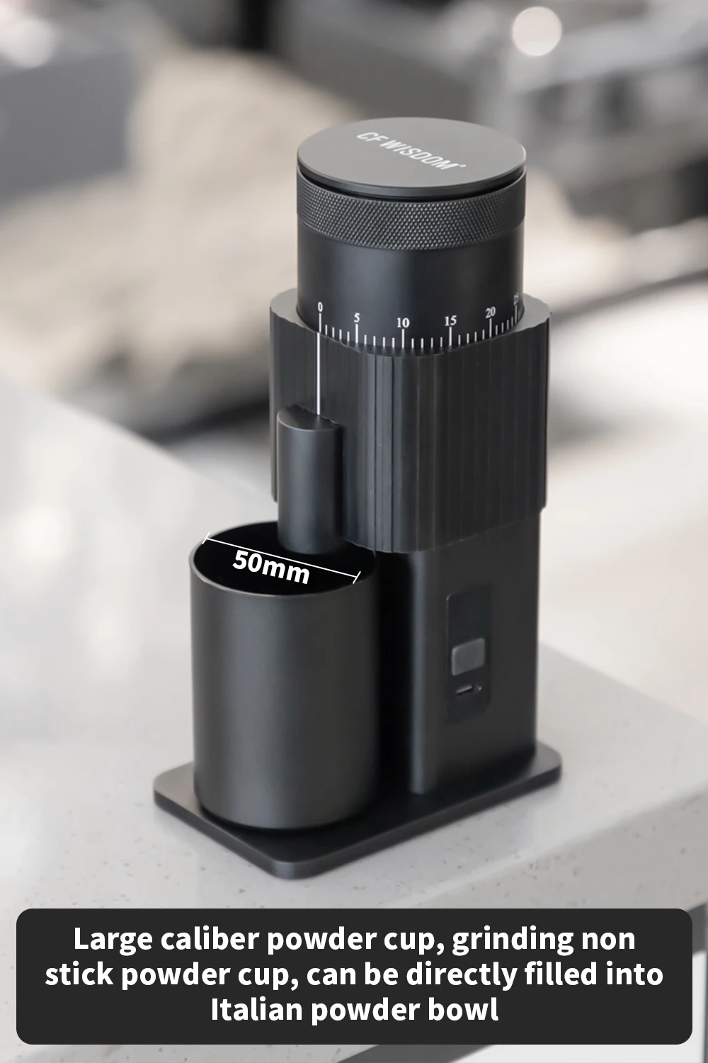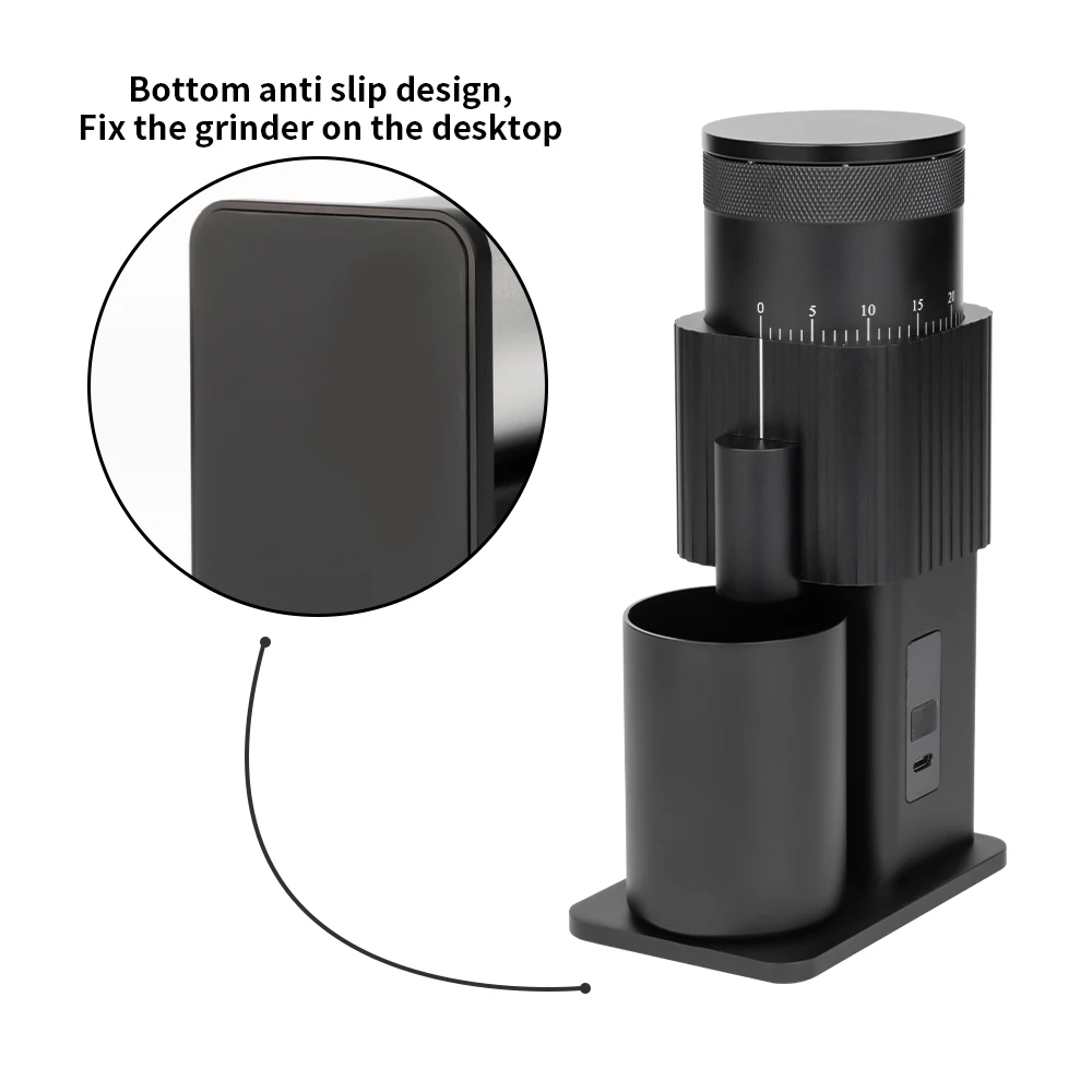 Construído com liga de alumínio durável, este moedor parece sólido e luxuoso.O tampa magnéticaclica com segurança para uma experiência de usuário tranquila e o design vertical minimalista se encaixa perfeitamente em qualquer configuração de café ou bancada moderna.