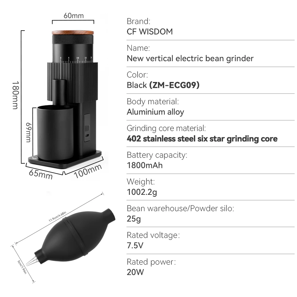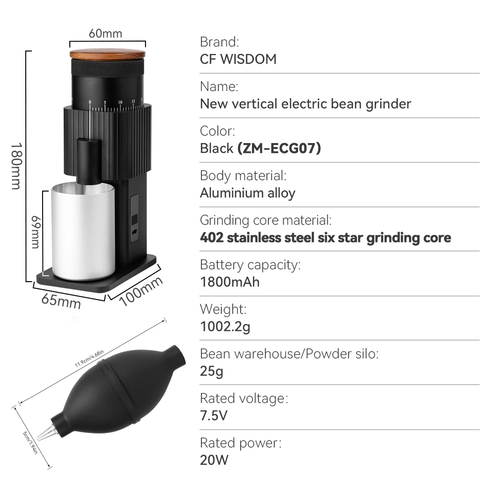 Isso atualizado Moedor de café elétrico com soprador de ar e tampa magnéticatorna a moagem do café mais limpa e fácil.O Rebarba de seis estrelas em aço inoxidável 420garante moagem precisa, enquanto o ventilador de ar incluídoremove o pó de café sem esforço.O tampa magnéticaveda firmemente para evitar derramamentos e manter seu espaço de trabalho arrumado.