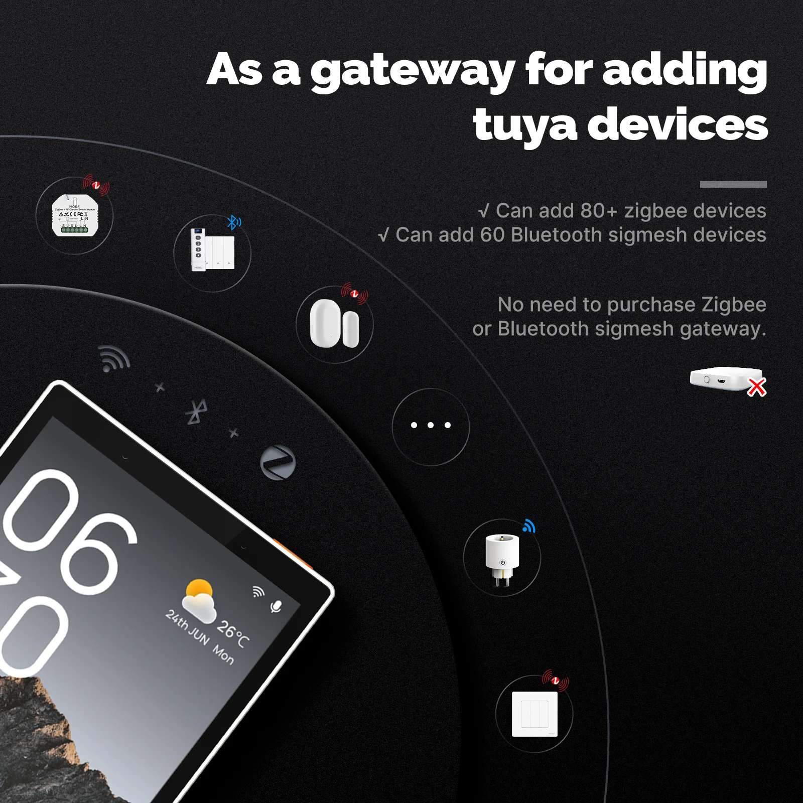 Ele pode ser usado como um gateway Tuya e suporta a conexão de dispositivos no ecossistema Tuya.Não há necessidade de um gateway adicional e uma tela de controle central pode entrar em contato com sua casa inteligente em casa.