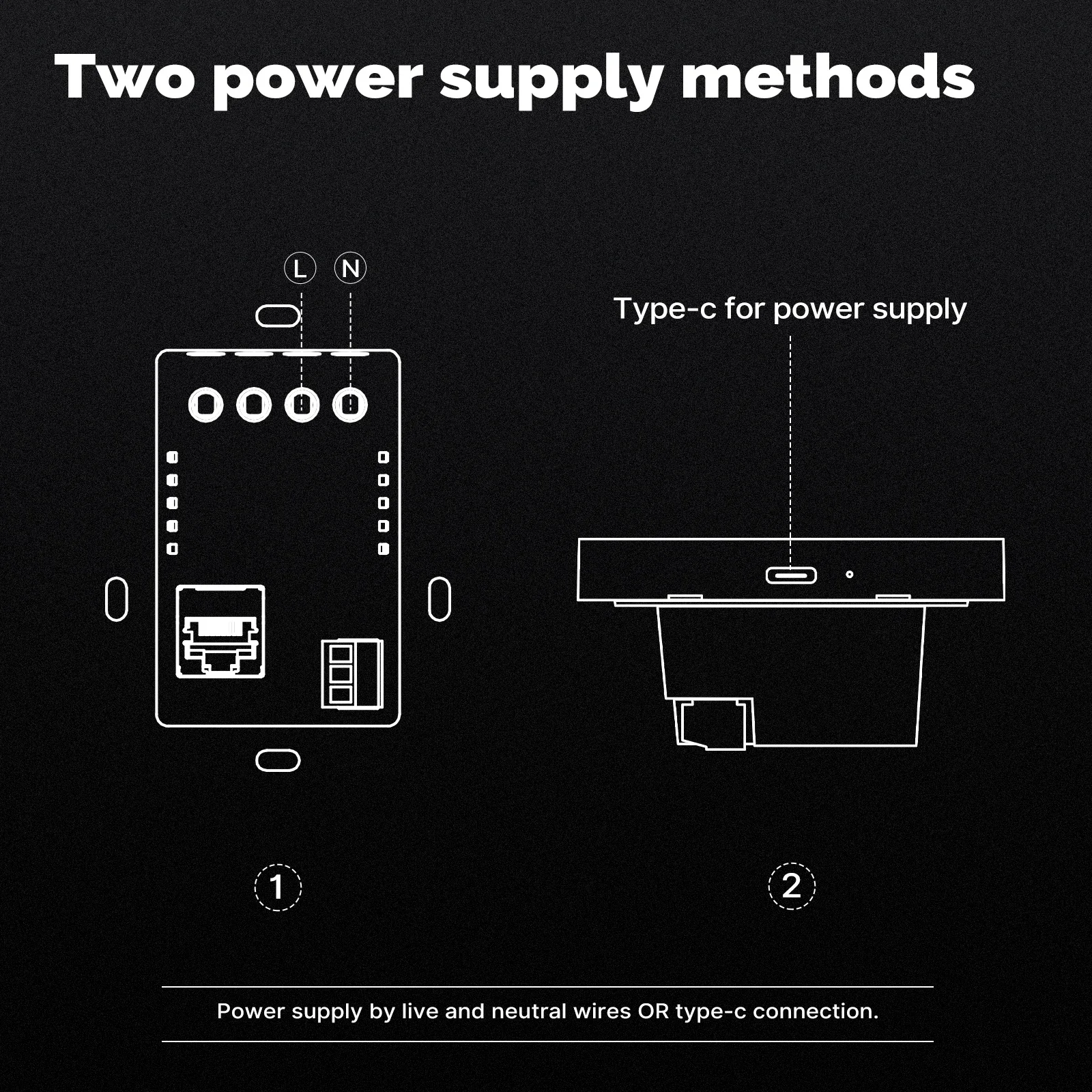 Você pode escolher a fiação tradicional para alimentar o painel de controle central ou pode optar por usar o tipo C para alimentá-lo.Você pode escolher entre dois métodos.
