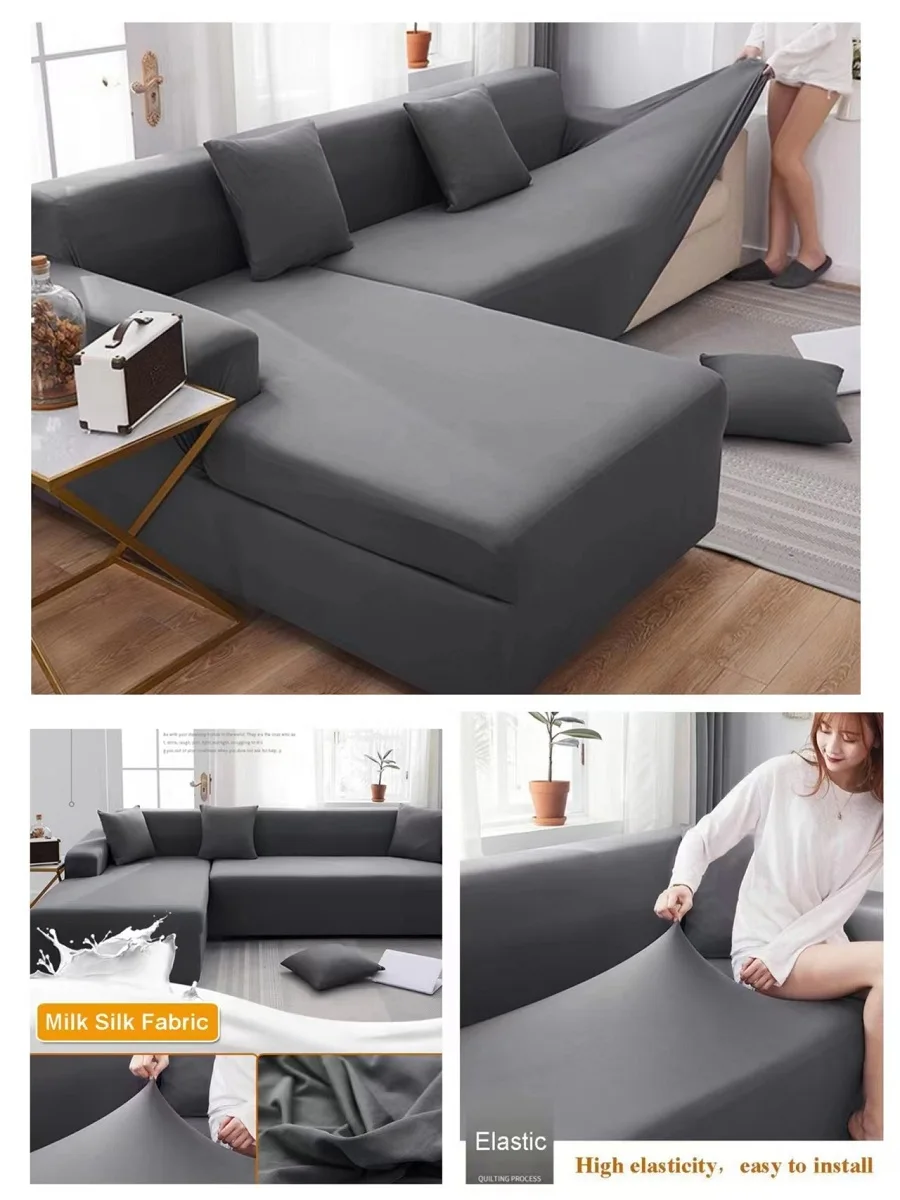 Monocromático Elastic Capas Sofá para Sala, L Shaped Canto Sofá Capa, Protetor de Cadeira Slipcover, 1, 2, 3, 4 Lugares