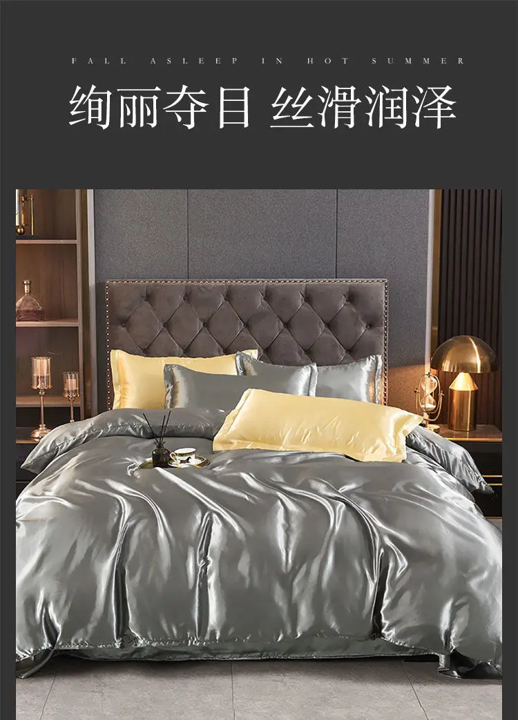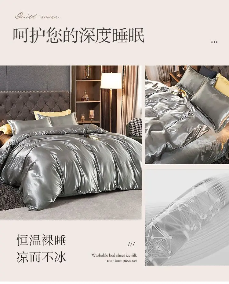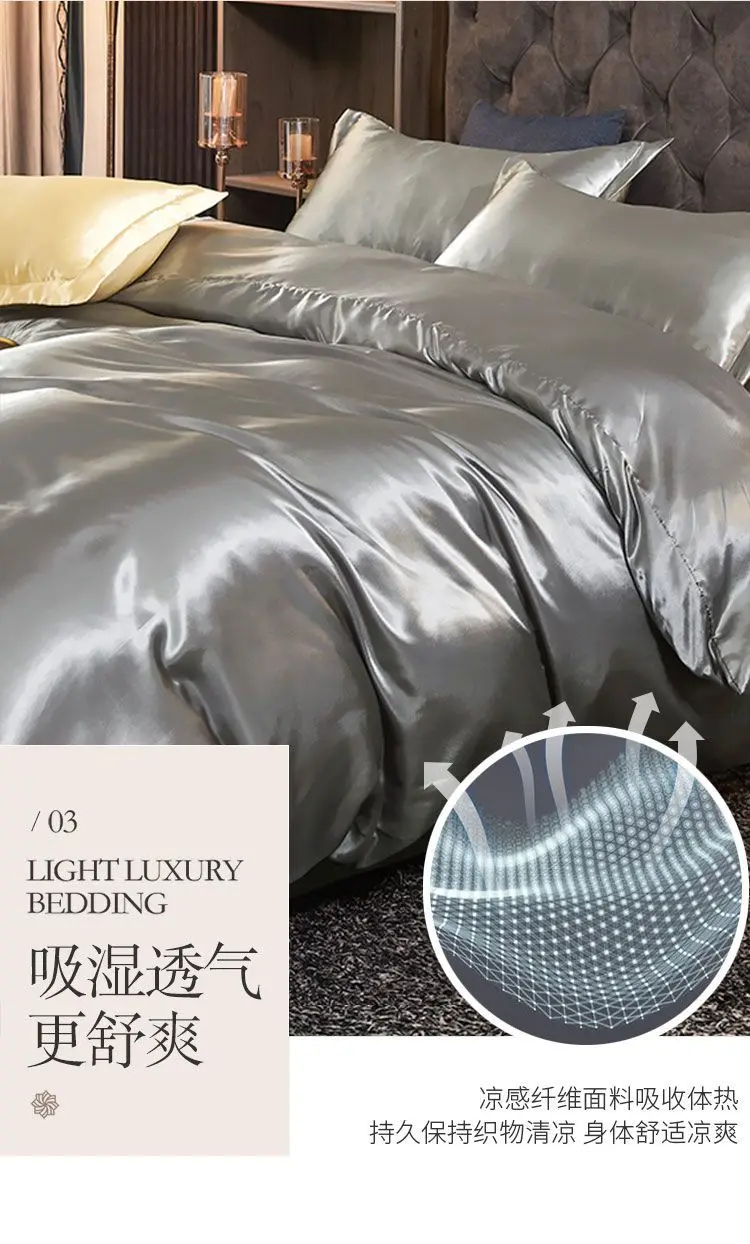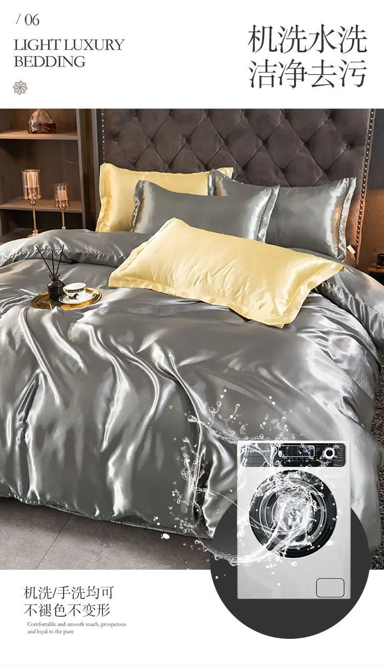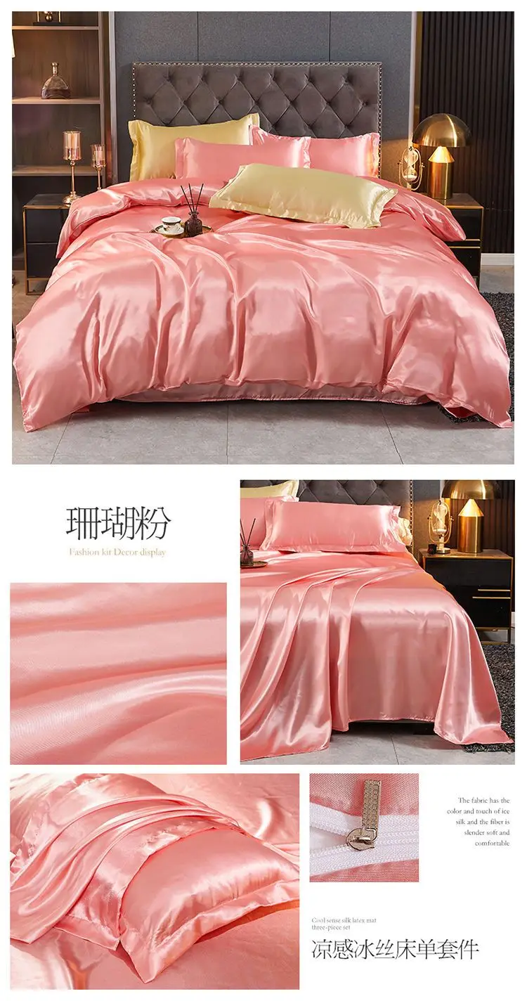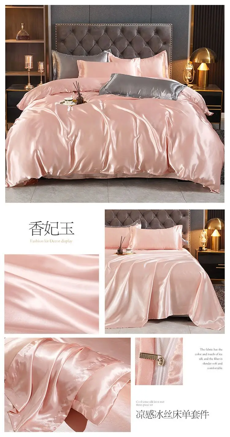 Monocromático Rayon Satin Conjunto de cama, luxo Duvet Cover Kit, Twin Queen e King Size, Home Textile, 3PCs, 4PCs