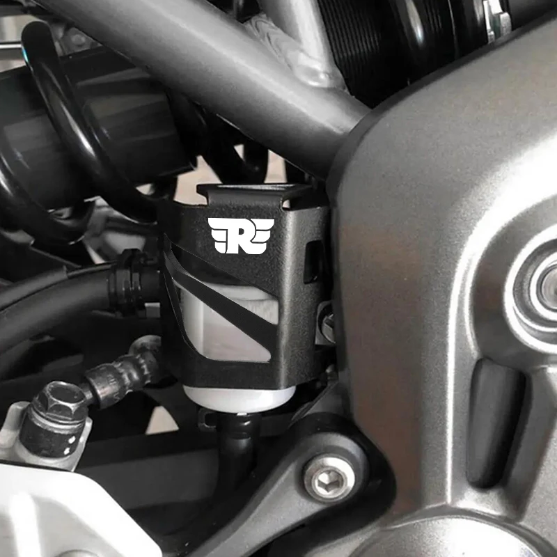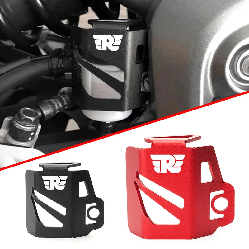 - > Motocicleta Freio Traseiro Fluid Reservoir Guard, CNC Alumínio Oil Cap, Capa Protetora Fit para Royal Enfield, Interceptor 650