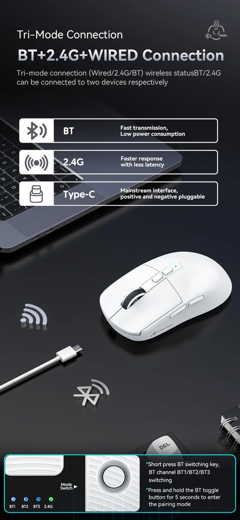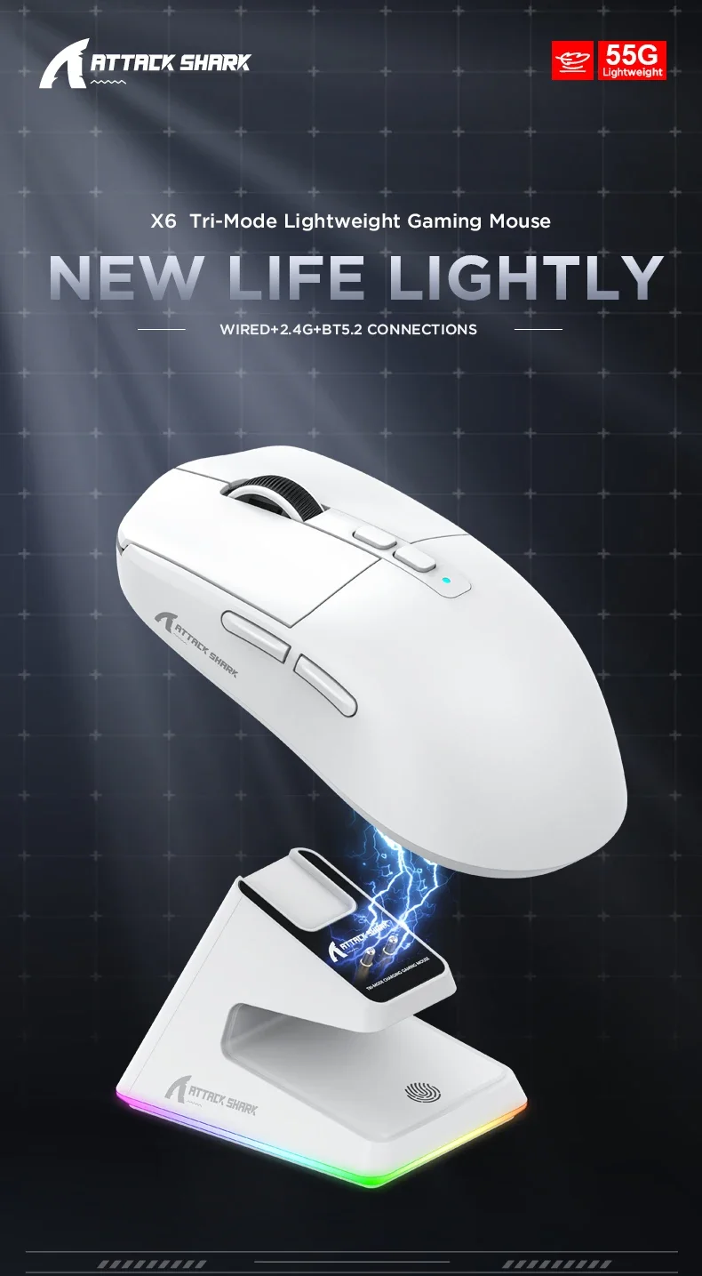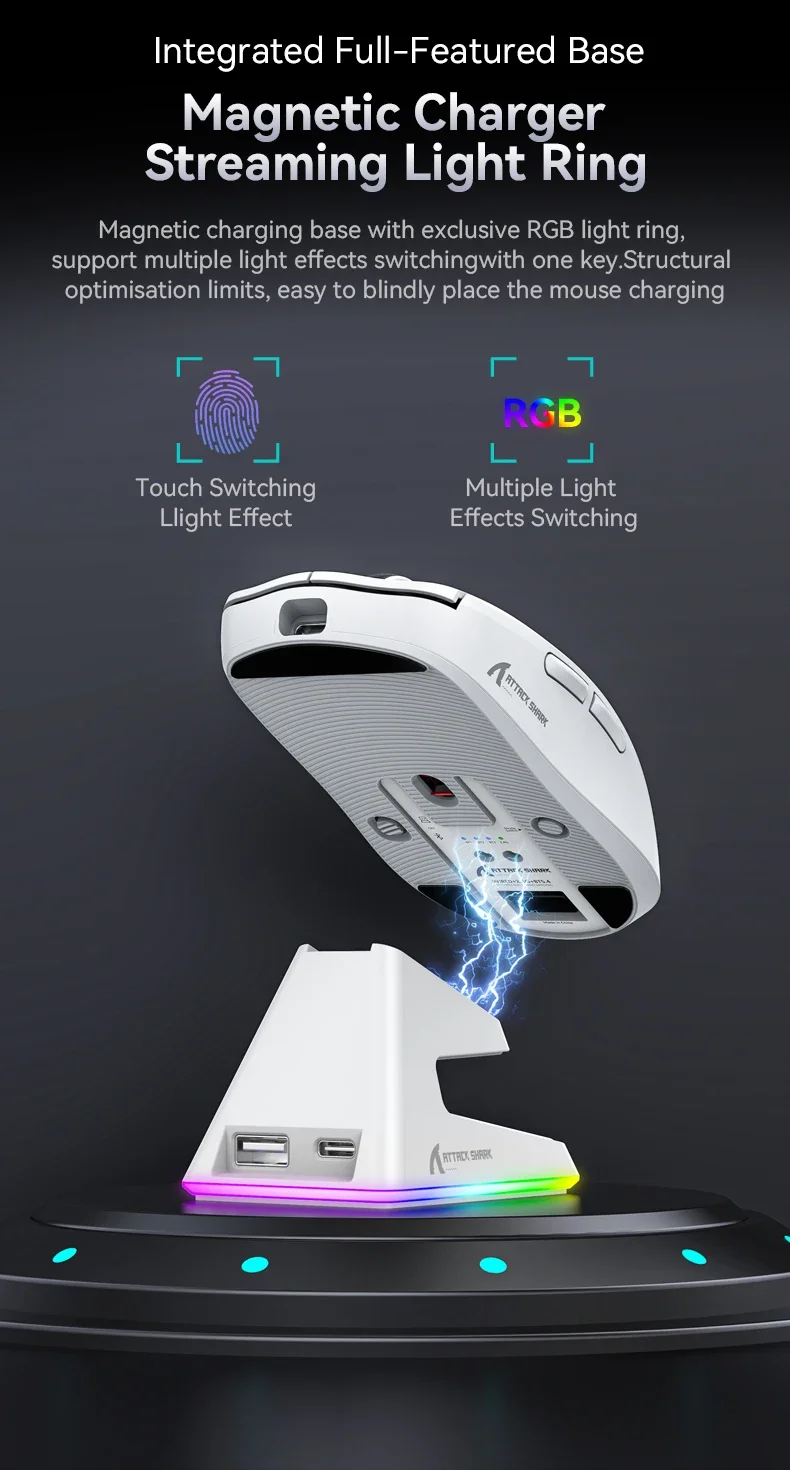 - > Mouse Bluetooth Attack Shark X6 PAW3395, conexão tri-mode 2.4, base de carregamento magnética RGB Touch, mouse macro para jogos