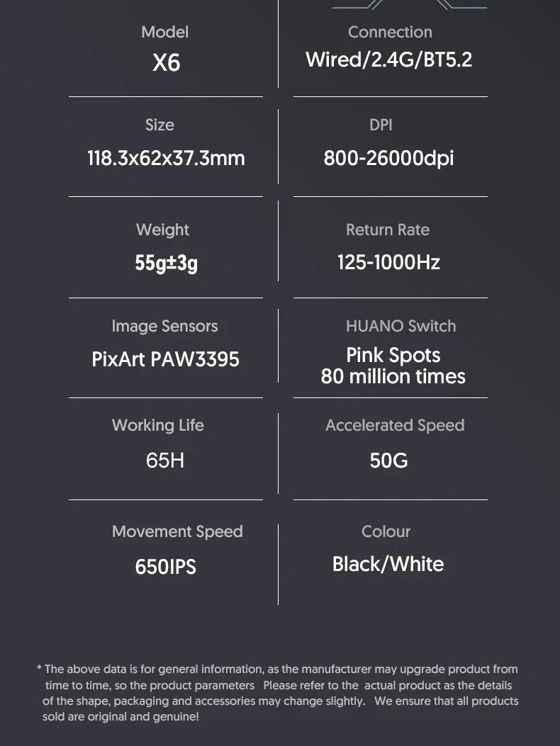 O modelo de Sensor de: Pixart 3395 (26000 DPI | 650 IPS | 50G)