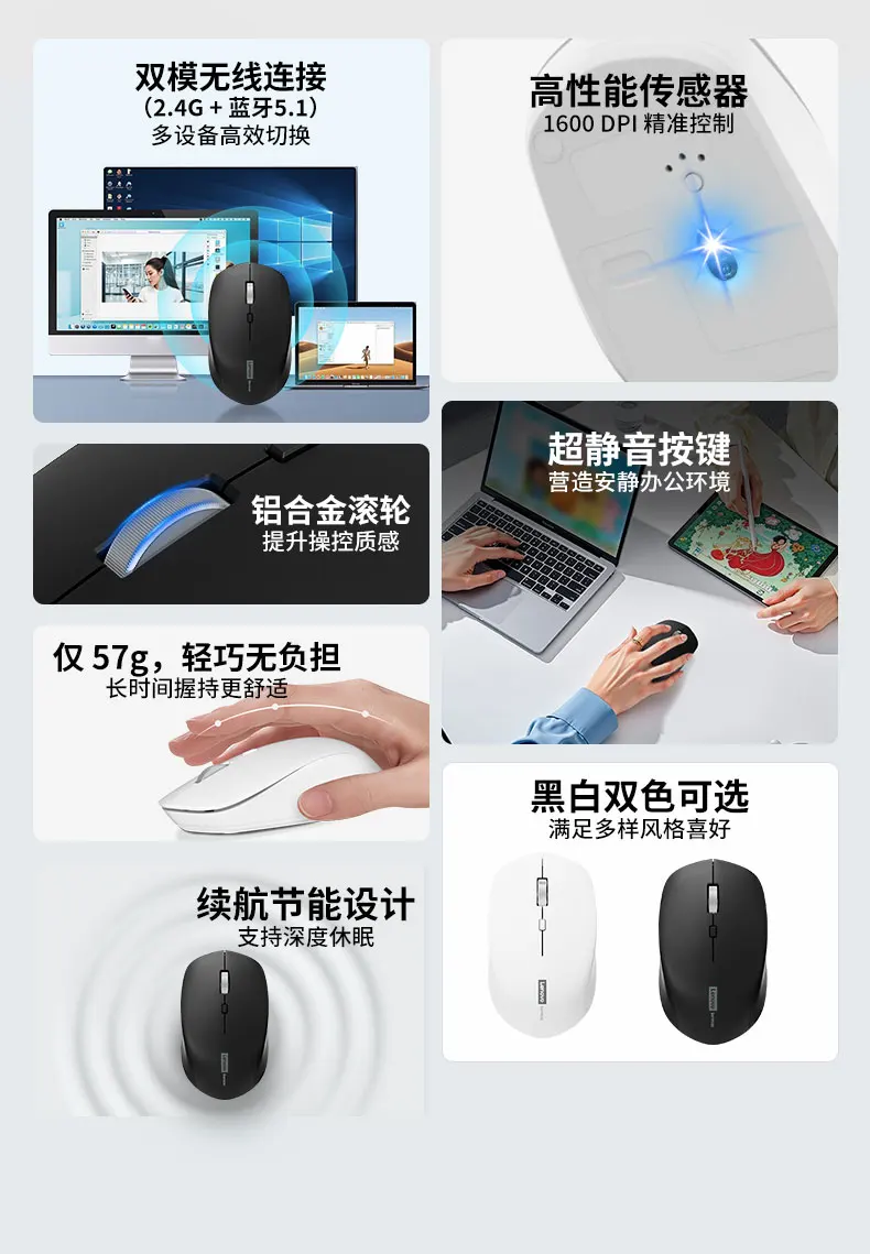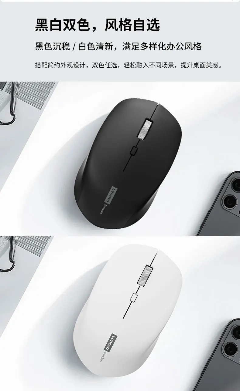- > Mouse sem fio Lenovo Business Office Mouse silencioso Design ergonômico compatível com múltiplas plataformas Conexão 2,4g, fonte de alimentação de bateria seca de 1,5V, o produto não inclui baterias