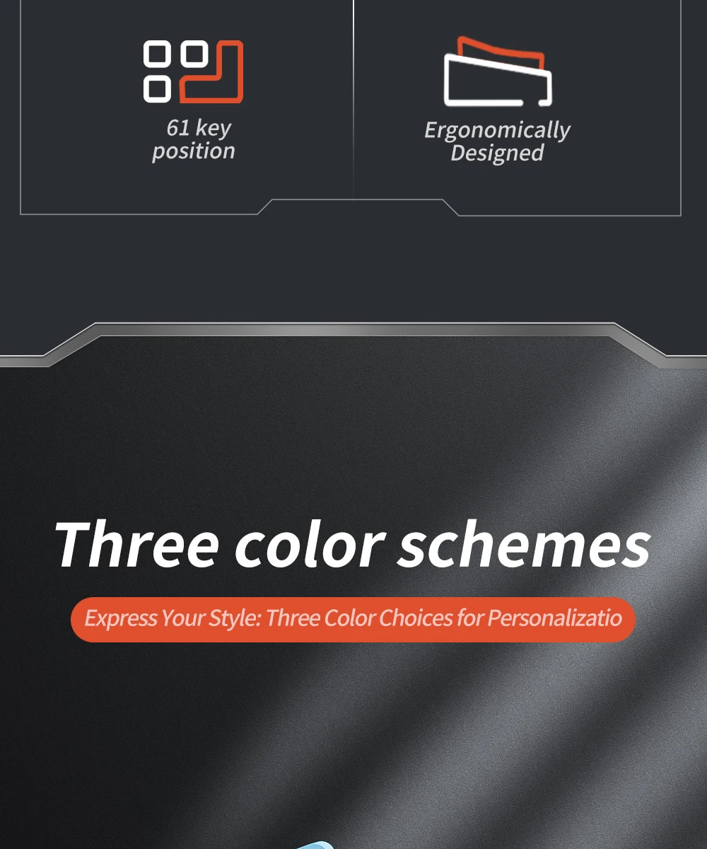 • Padrão de 61 teclas:O padrão de 61 teclas do teclado oferece teclas amplas para digitação e jogos confortáveis, enquanto seu design compacto o torna ideal para uso em desktop.