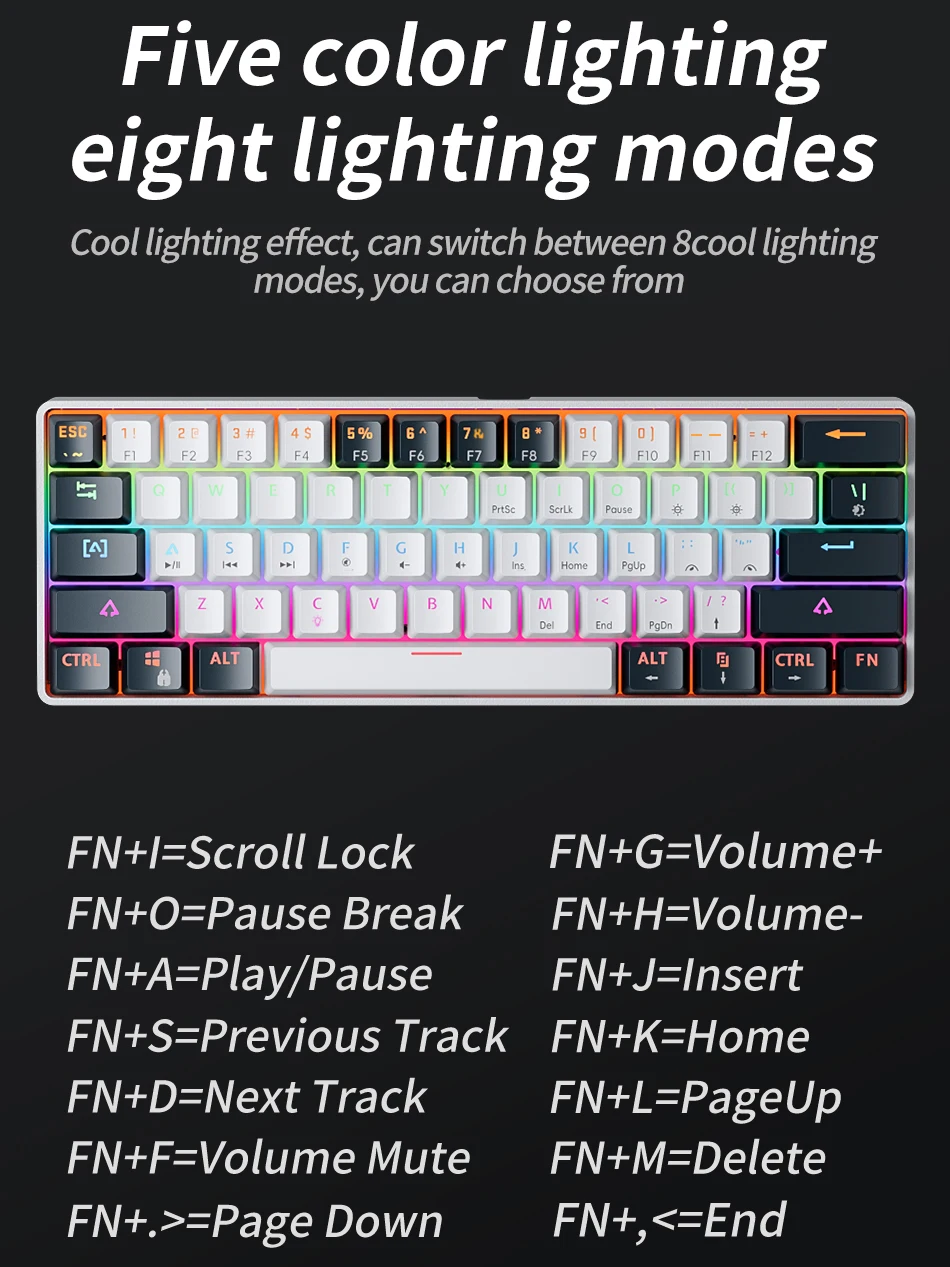 - > Mucai mk61 rgb retroiluminado esports teclado mecânico para jogos com eixo vermelho cabo destacável com fio interface usb hot swappable