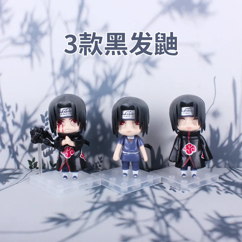 Naruto Action Figure Anime para Adultos, Uchiha Itachi, Kakashi Cartoon Toys, Ornamento Colecionável Itachi Akatsuki, Presente, 11cm, 3 peças por conjunto