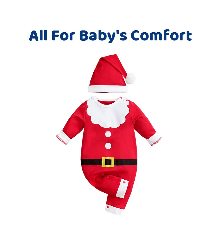 - > Natal papai noel bebê recém-nascido menina macacão branco traje macacão menino manga longa 100% algodão roupas primavera e outono bonito