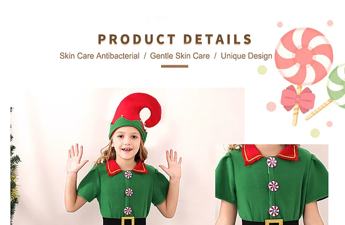 Esta fantasia de elfo infantil vem com uma jaqueta de elfo escovado com mangas listradas.Ele também vem com calças verdes combinando, um chapéu de elfo, um cinto e capas de sapato projetadas como sapatos de elfo.