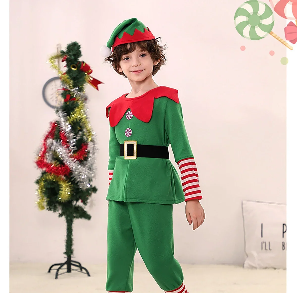 Natal papai noel traje elfo verde cosplay família carnaval festa de halloween fantasia vestido conjunto roupas para homens mulheres meninas meninos
