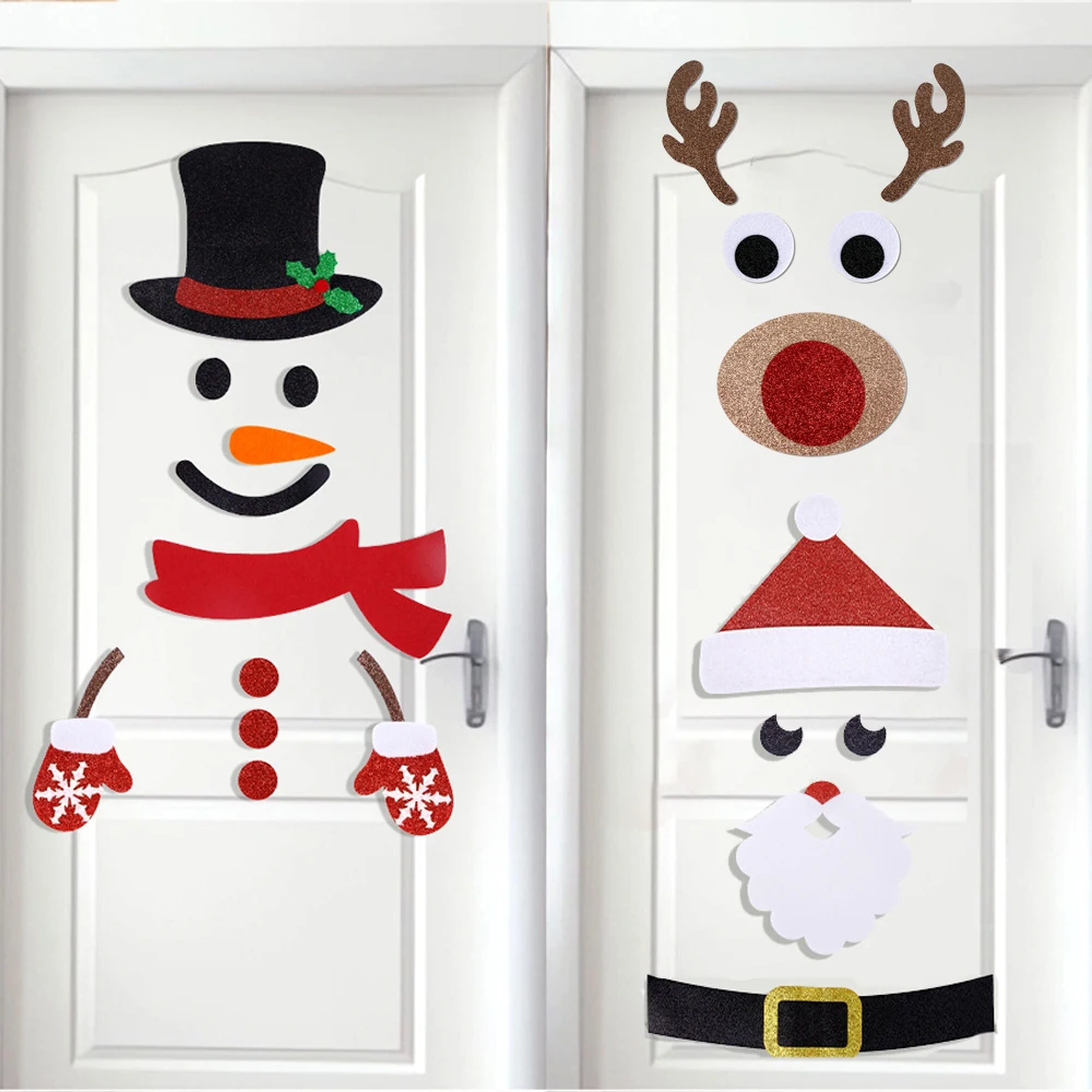 Natal porta e janela adesivos feltro, boneco de neve dos desenhos animados, Papai Noel, alces, adesivo de parede para o inverno, decoração do Natal, Natal, ano novo