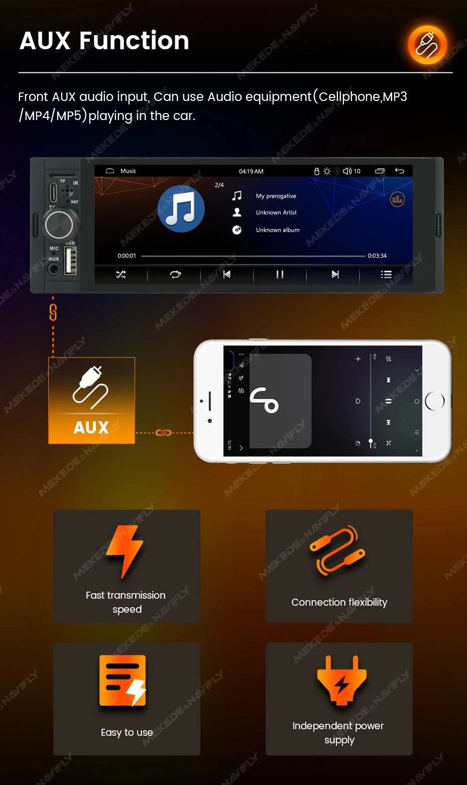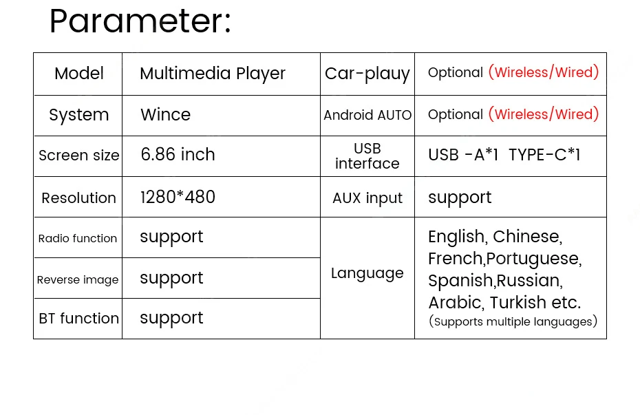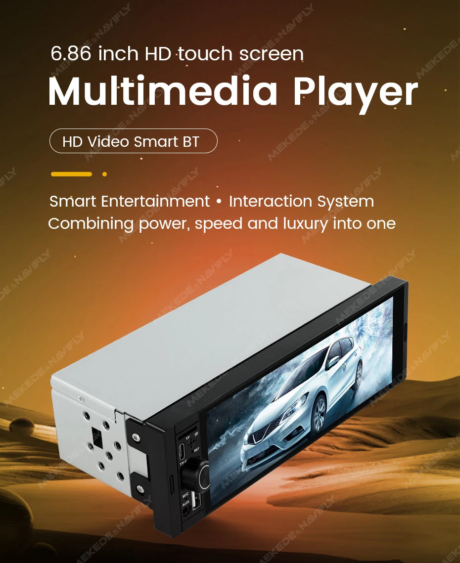 Navifly od8 6.86 "1280*480 1 din mp5 player rádio do carro sem fio carplay android auto multimídia player 1din fm rádio estéreo automático