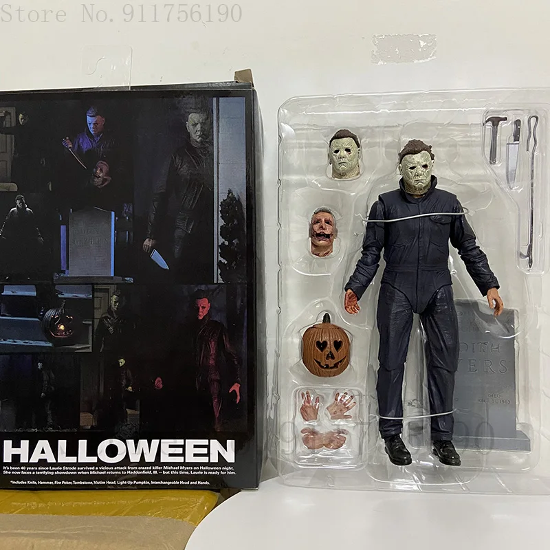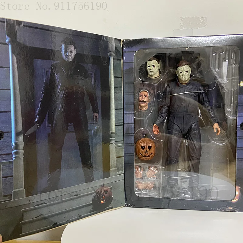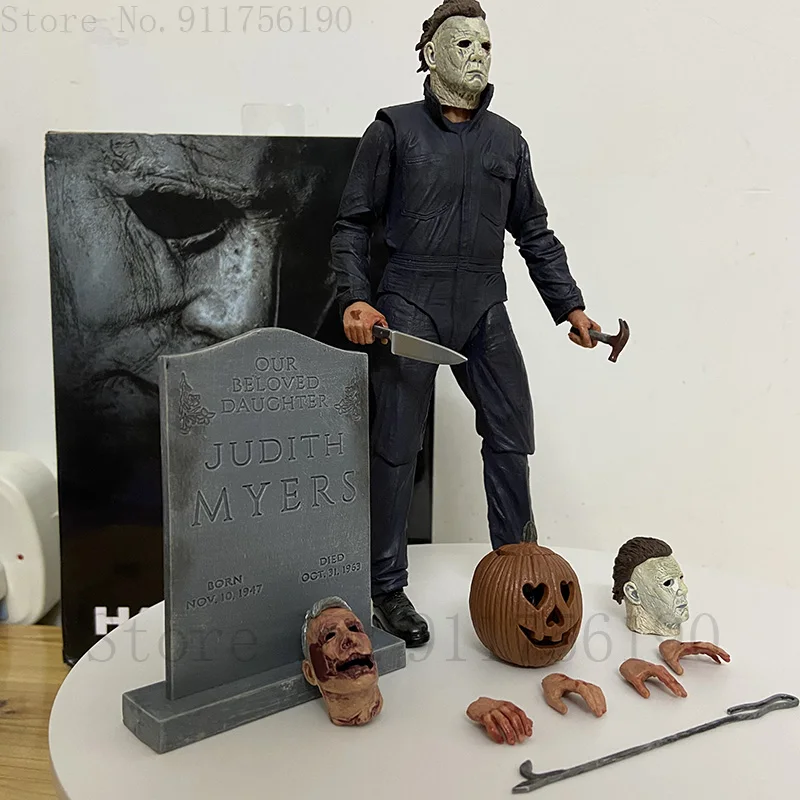 - > Neca figura abóbora com luz led halloween final michael myers pvc figura de ação brinquedo boneca natal horror figura presente