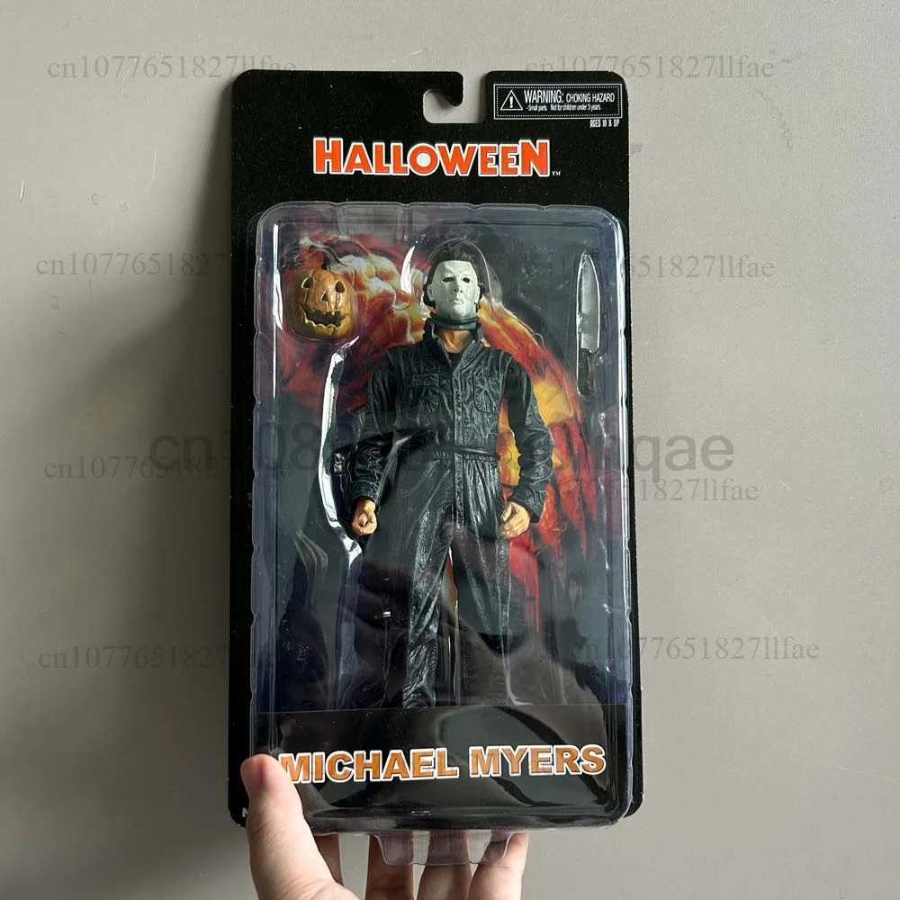 Neca michael myers figura com abóbora led halloween ii mata extremidades michael myers final figura de ação modelo brinquedos conjunta móvel
