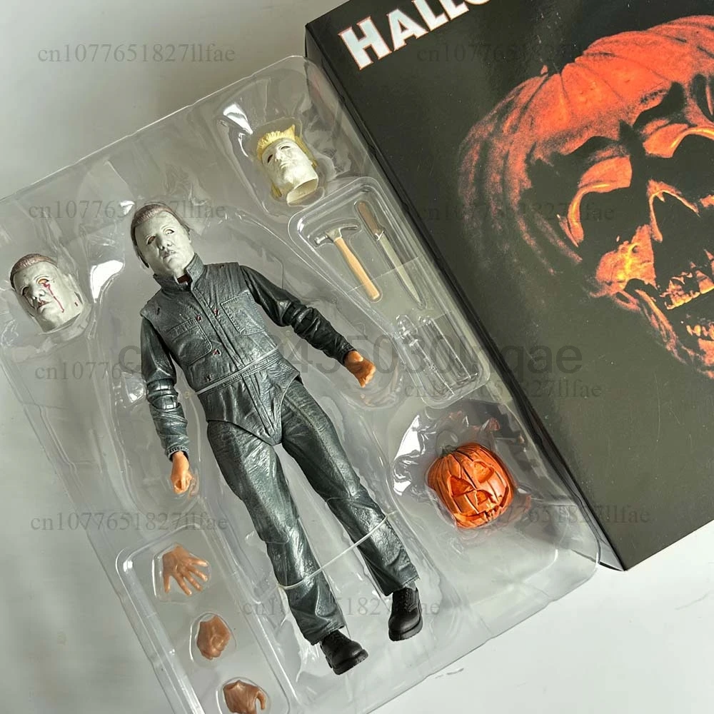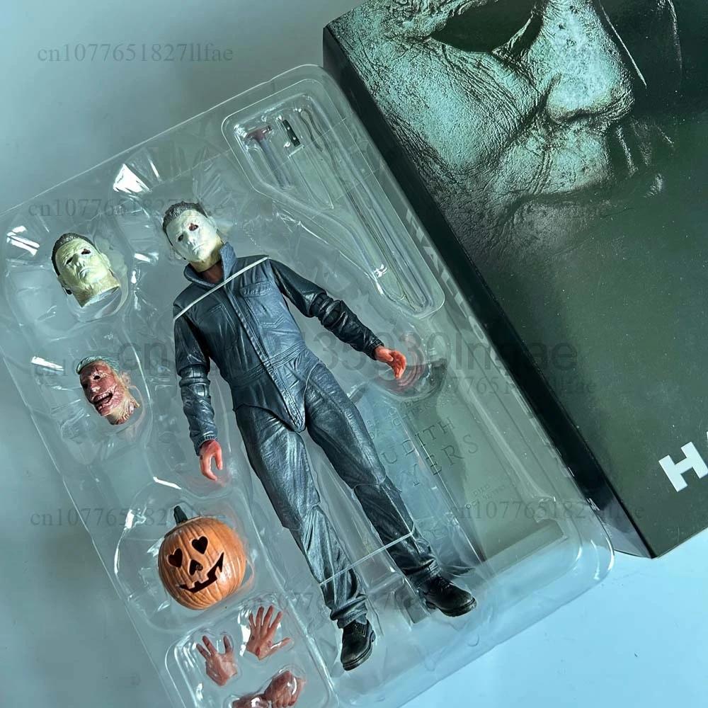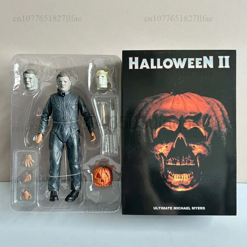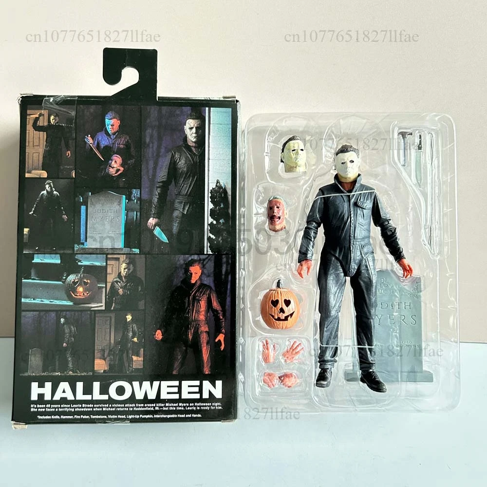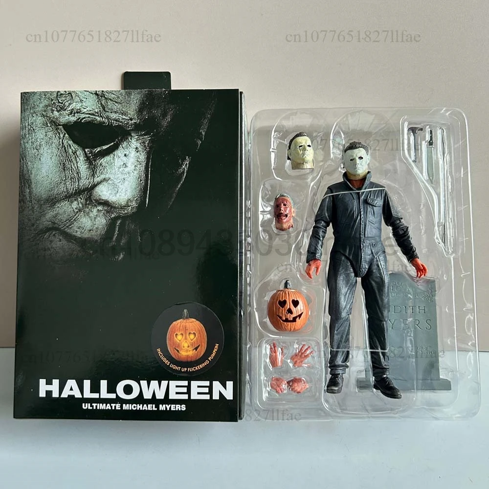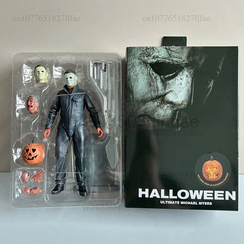 - > Neca michael myers figura com abóbora led halloween ii mata extremidades michael myers final figura de ação modelo brinquedos conjunta móvel