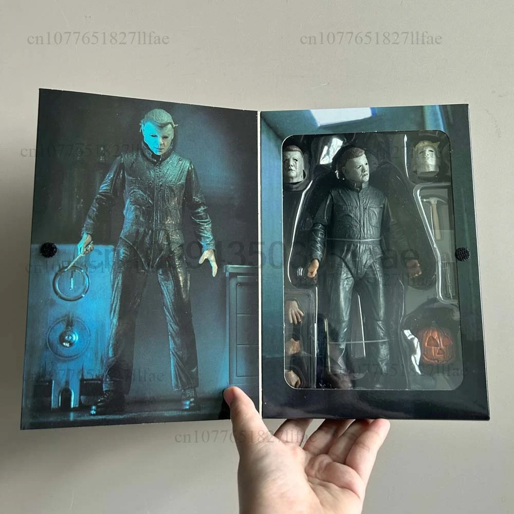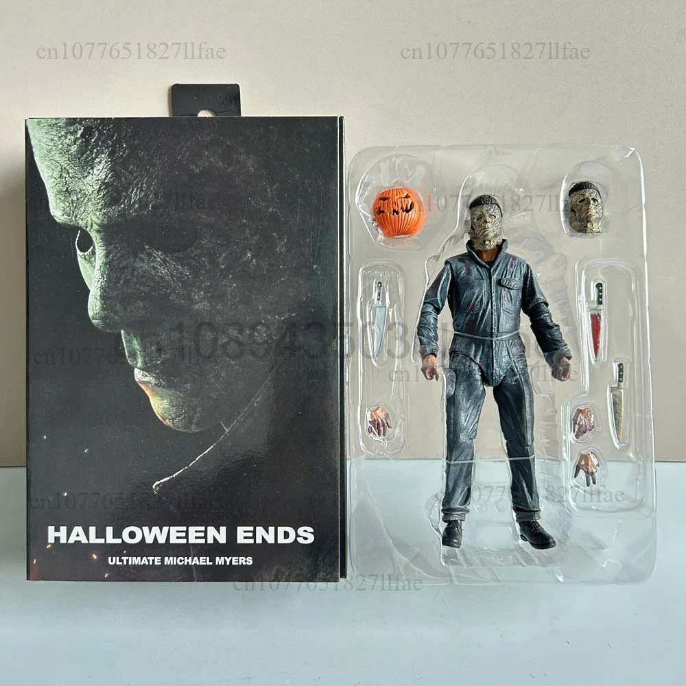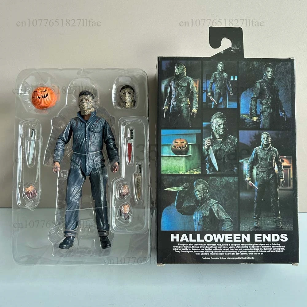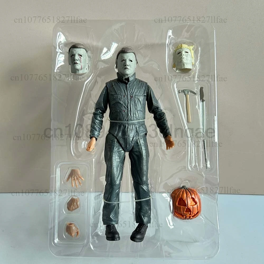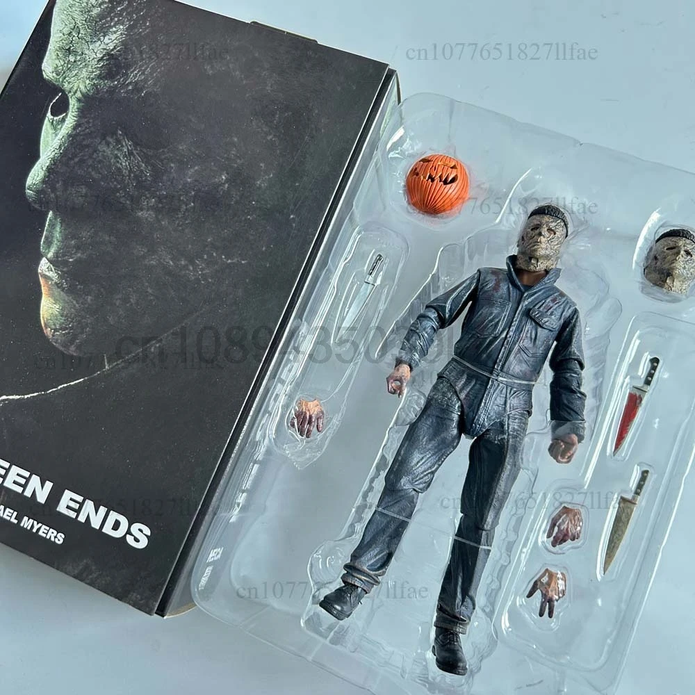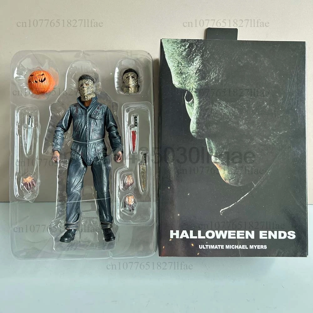 - > Neca michael myers figura com abóbora led halloween ii mata extremidades michael myers final figura de ação modelo brinquedos conjunta móvel