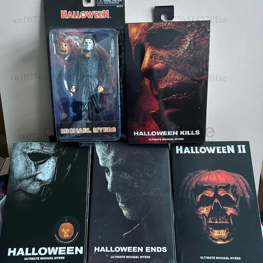 NECA Michael Myers Figura Com LED Abóbora Halloween II Kill Ends Michael Myers Ultimate Action Figure Model Toys Articulações Móveis