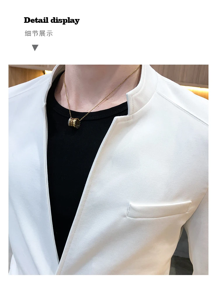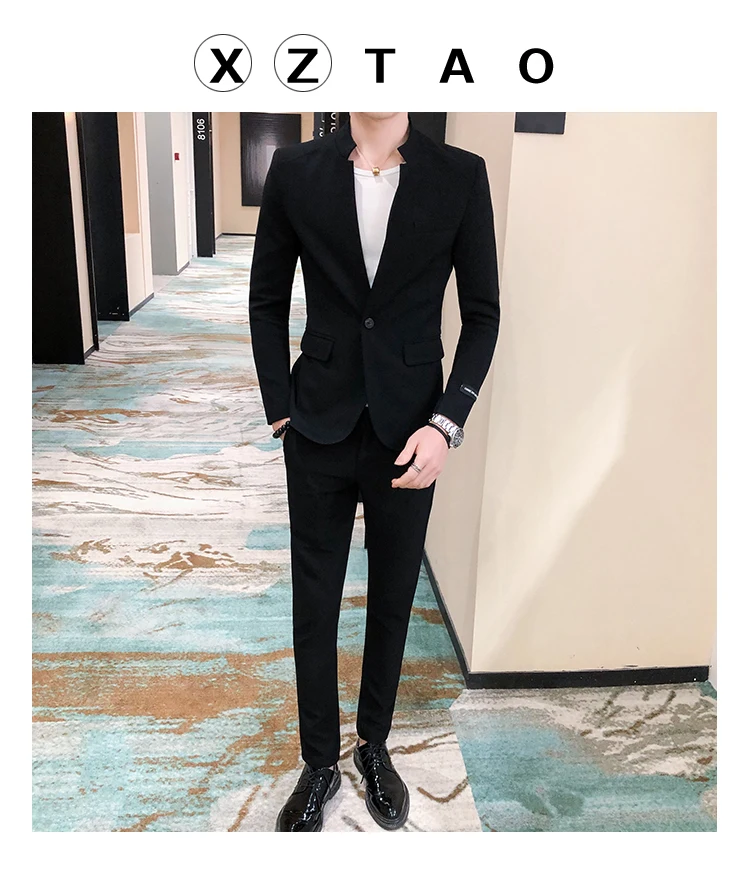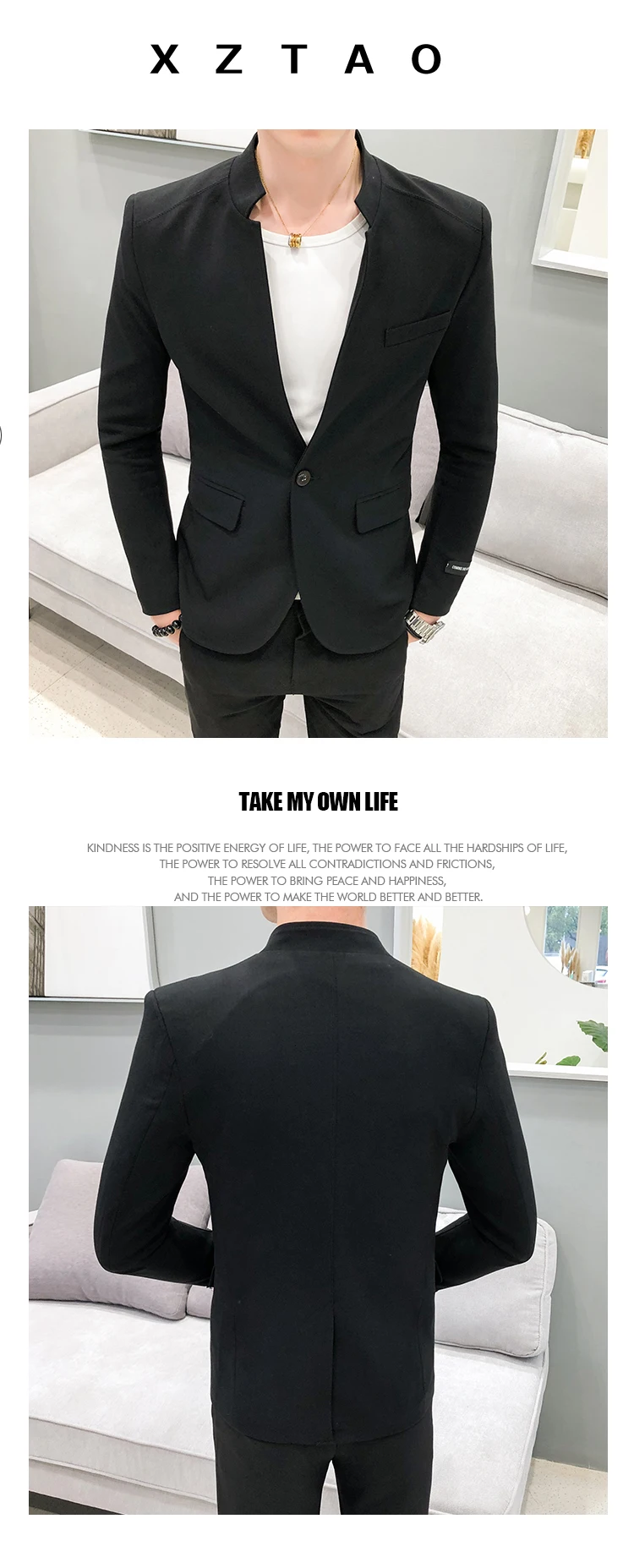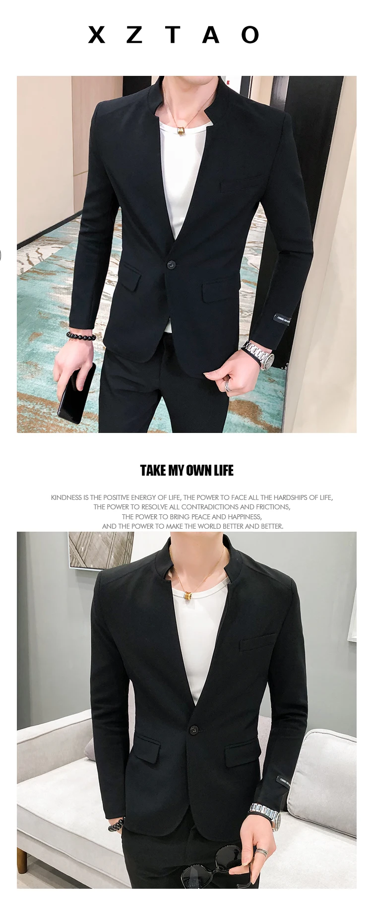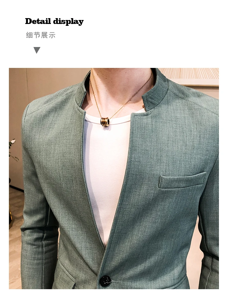 - > New (Blazer+ Pants) Men's Fashion Business Korean Version of Gentleman Zhongshan Stand Collar Casual British Style 2-piece Set
