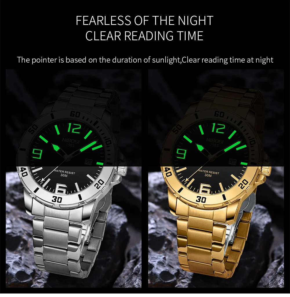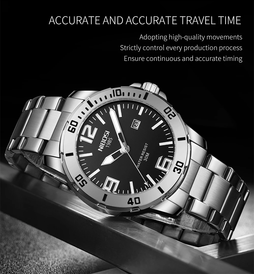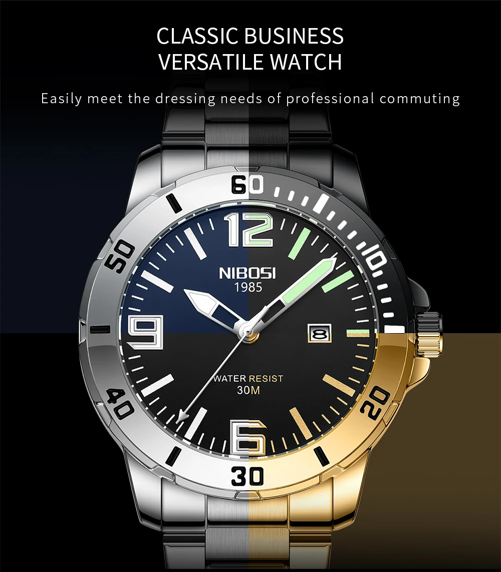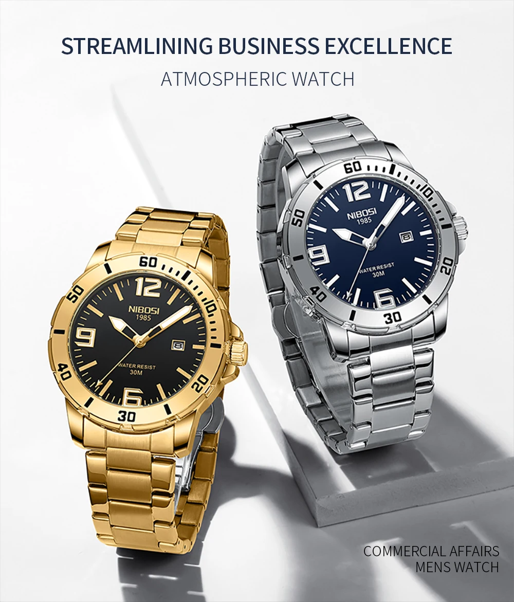 - > Nibosi-relógios de pulso de quartzo masculino, marca de luxo, negócios, luminoso, à prova d'água, com calendário, para homens, 2024