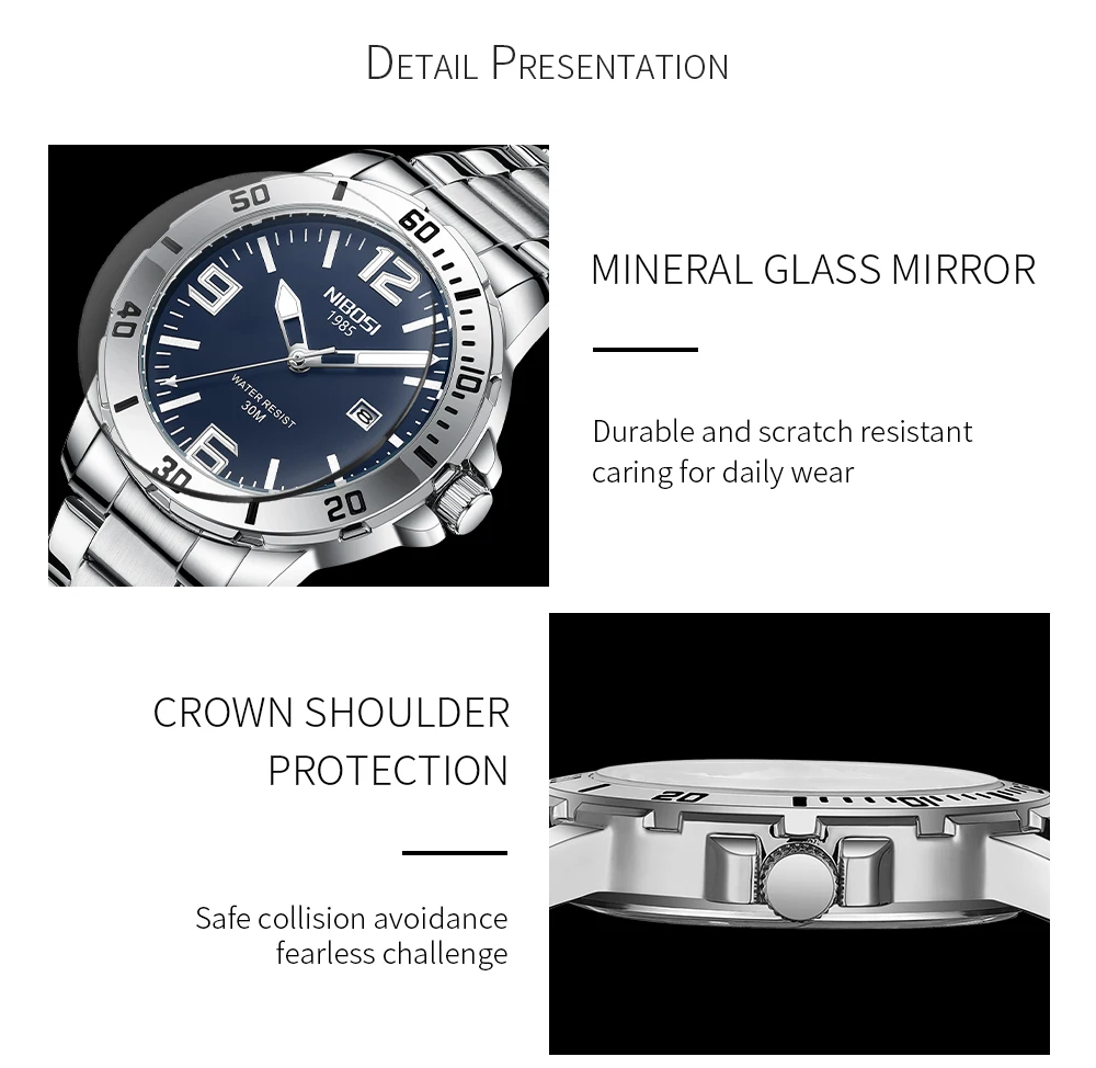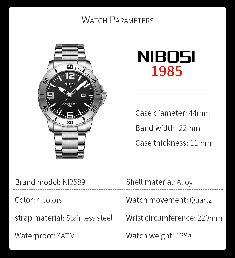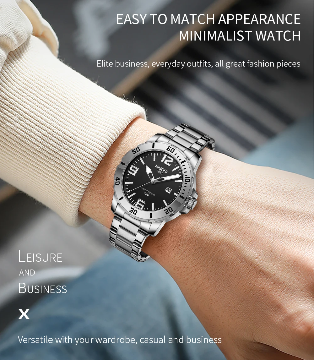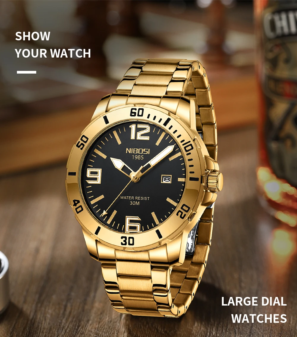 - > Nibosi-relógios de pulso de quartzo masculino, marca de luxo, negócios, luminoso, à prova d'água, com calendário, para homens, 2024