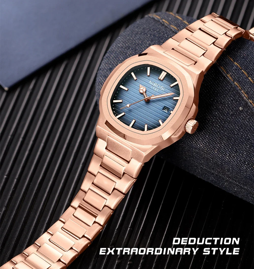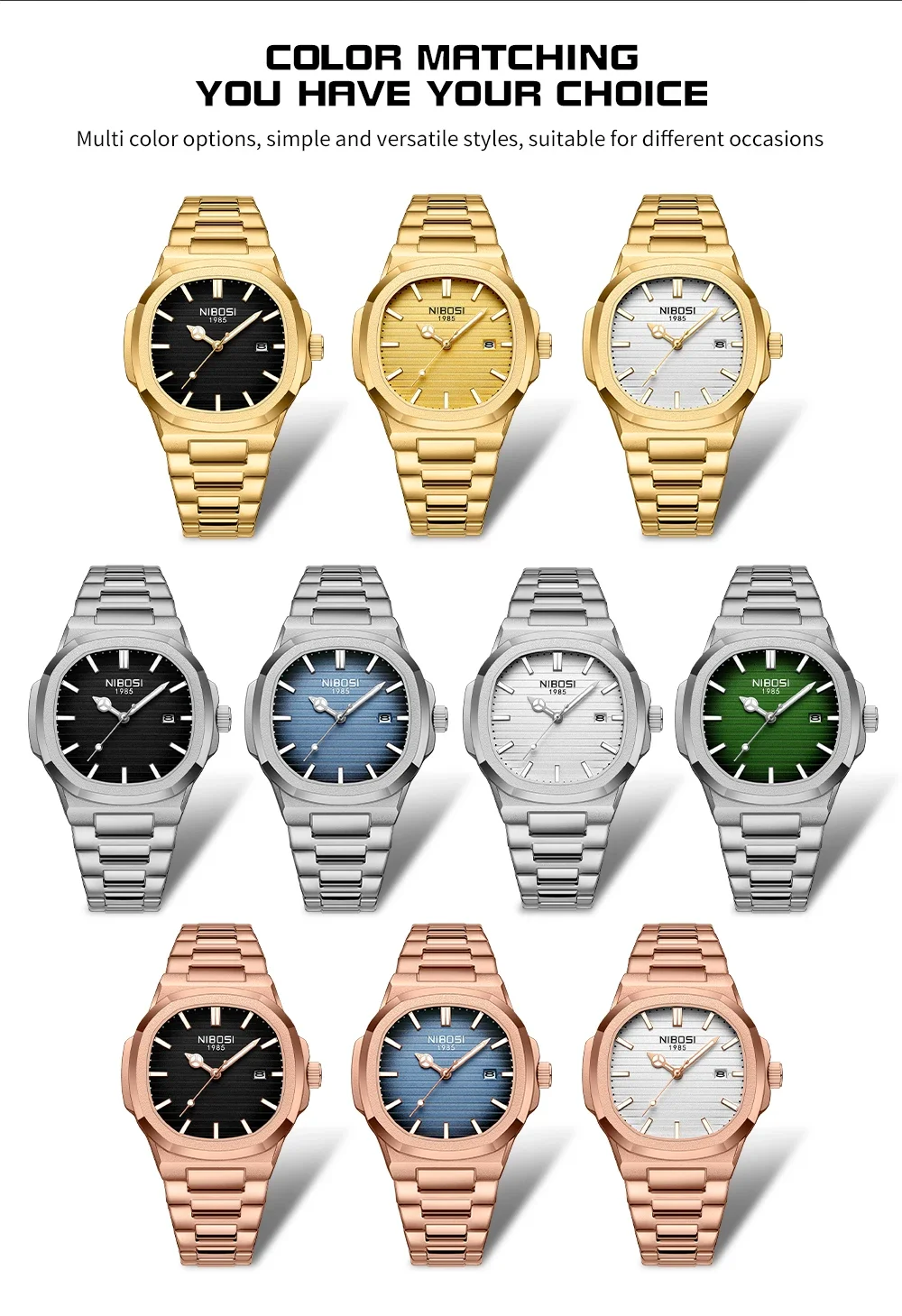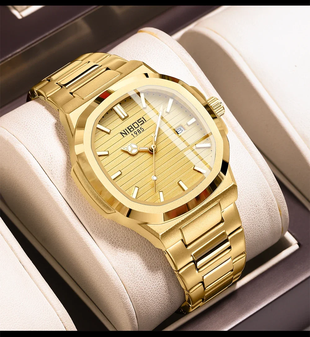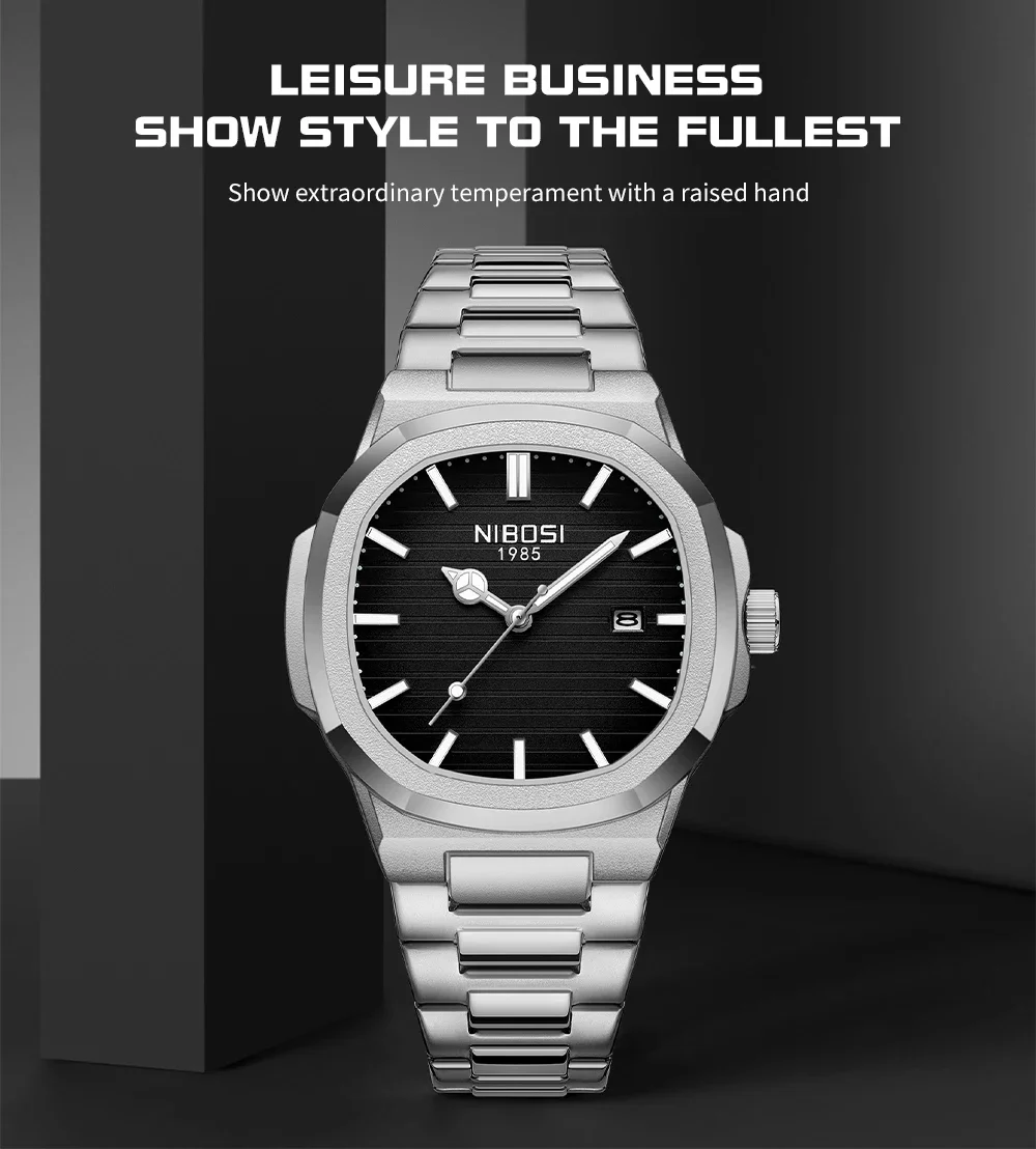 - > Nibosi relógios masculinos de luxo à prova dwaterproof água luminosa data relógios esportes quadrado relógio masculino casual relógio de pulso quartzo masculino