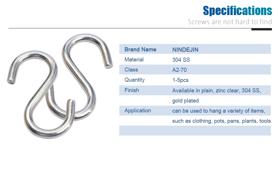 Nindejin 1-10 unidades/pacote ganchos em forma de s de aço inoxidável resistente m2 m3 m4 m5 m6 m8 m10 utilitário s-gancho para suspensão do armário de cozinha