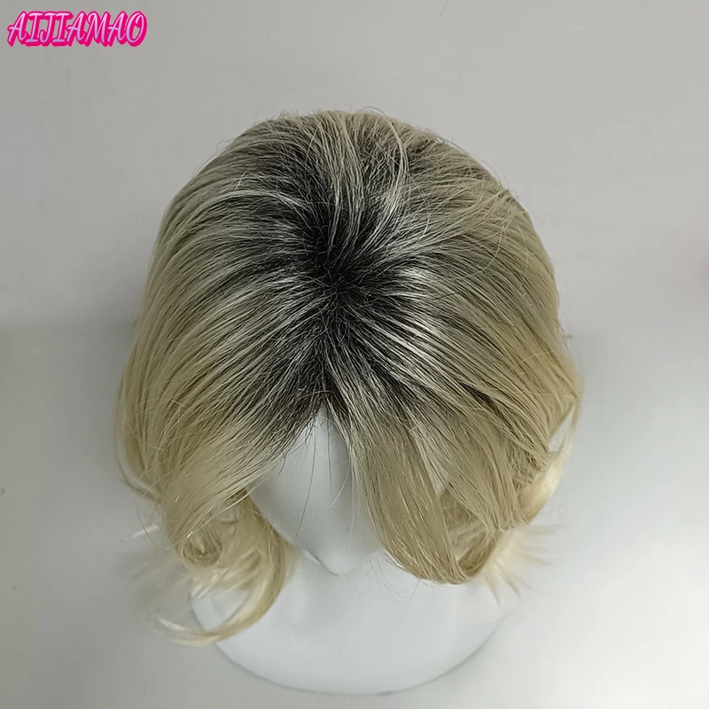 Noiva de Chucky Tiffany Cosplay Peruca Hallowen Loira Omber Preto Resistente ao Calor Cabelo Sintético Jennifer Tilly Perucas + Peruca Cap