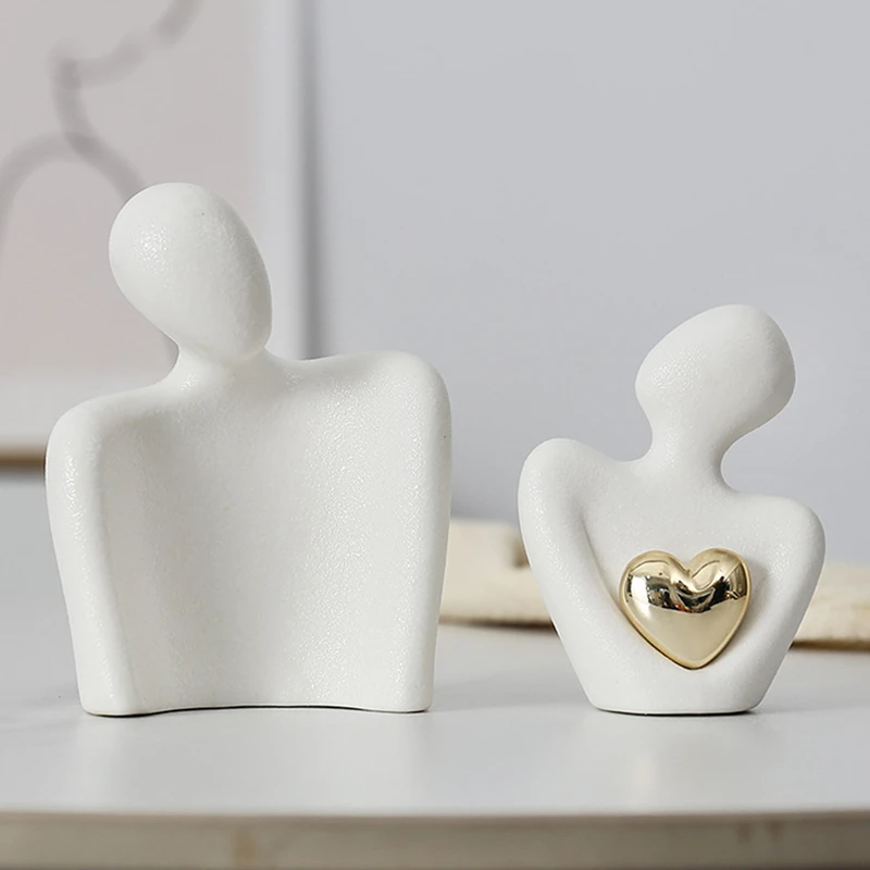 Nordic decorativo abstrato casal estátua decoração moderna casa escultura figura de cerâmica estatuetas sala estar artesanato ornamentos