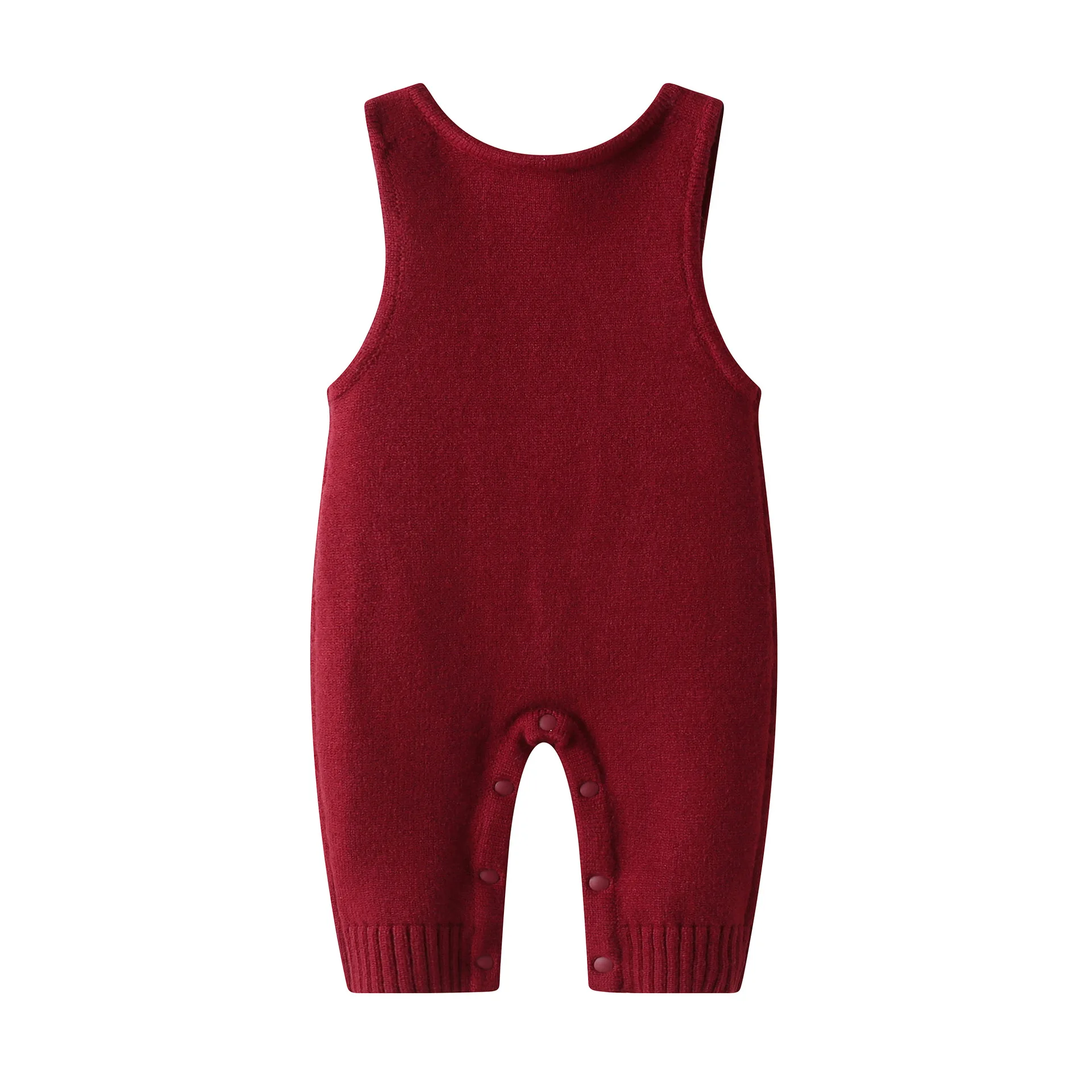 - > Nova árvore de natal cinta bodysuit bebê moda botão duplo vinho vermelho malha cinta macacão para menina e meninos macacão de lã quente