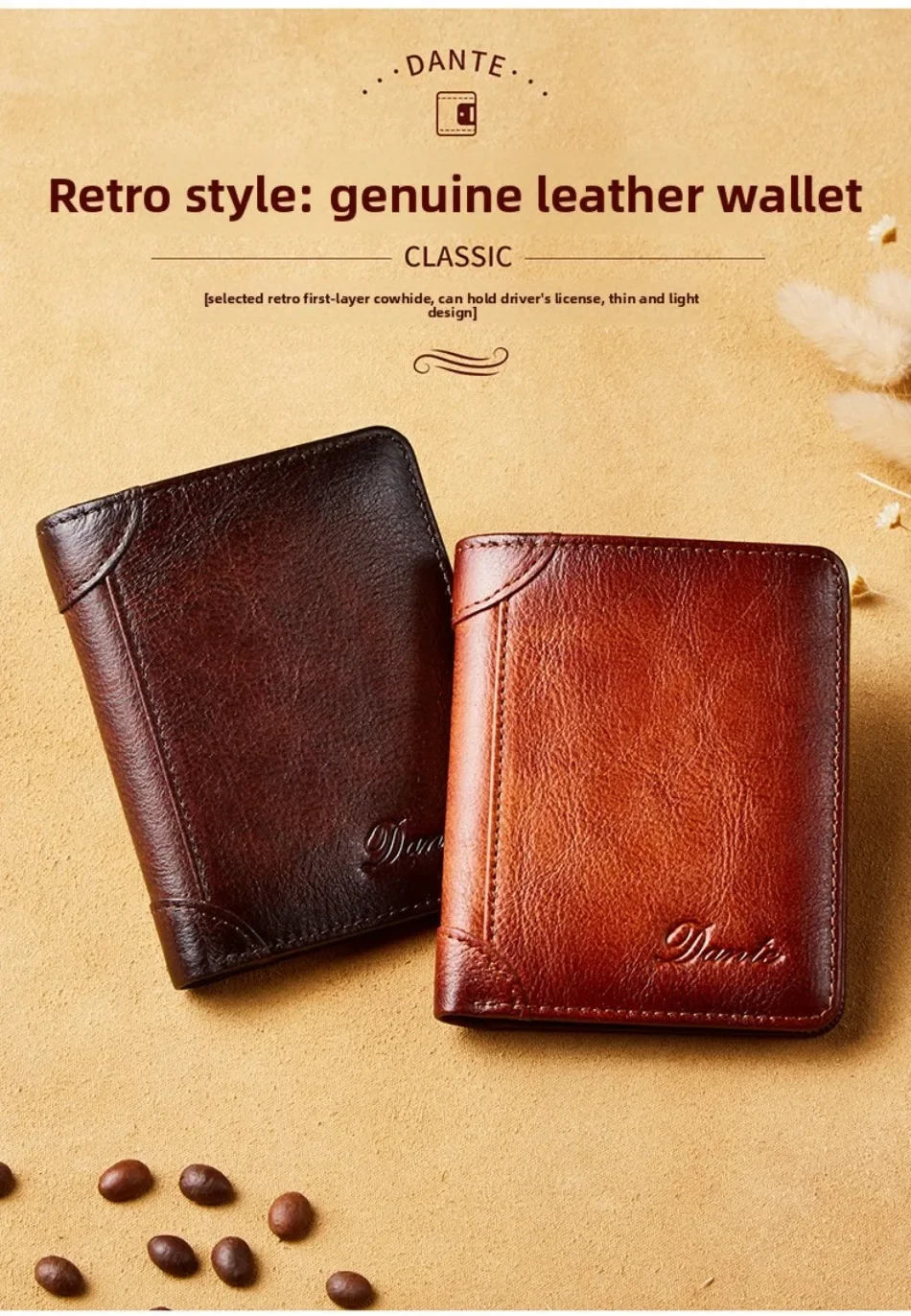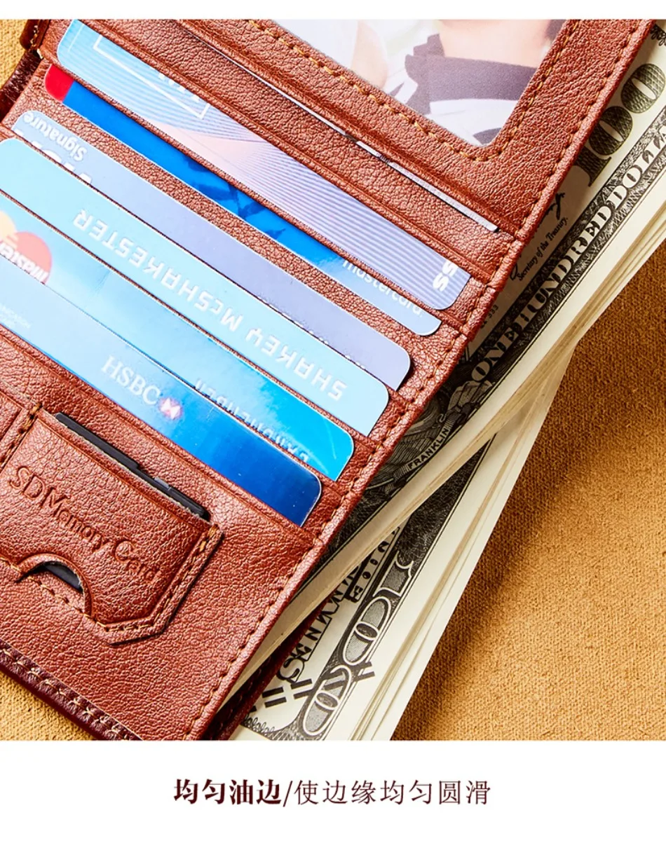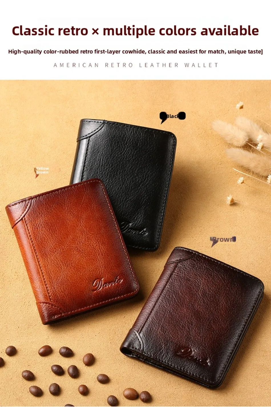 - > Nova carteira masculina duas vezes vertical primeira camada de couro anti-roubo cartão de desmagnetização carteira de couro negócios popular carteira