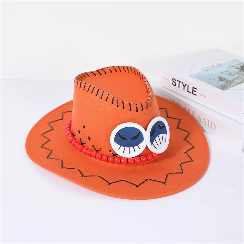 - > Nova chegada anime ace cosplay chapéus unisex luffy ace laranja cowboy boné para crianças adulto halloween carnaval cosplay acessórios