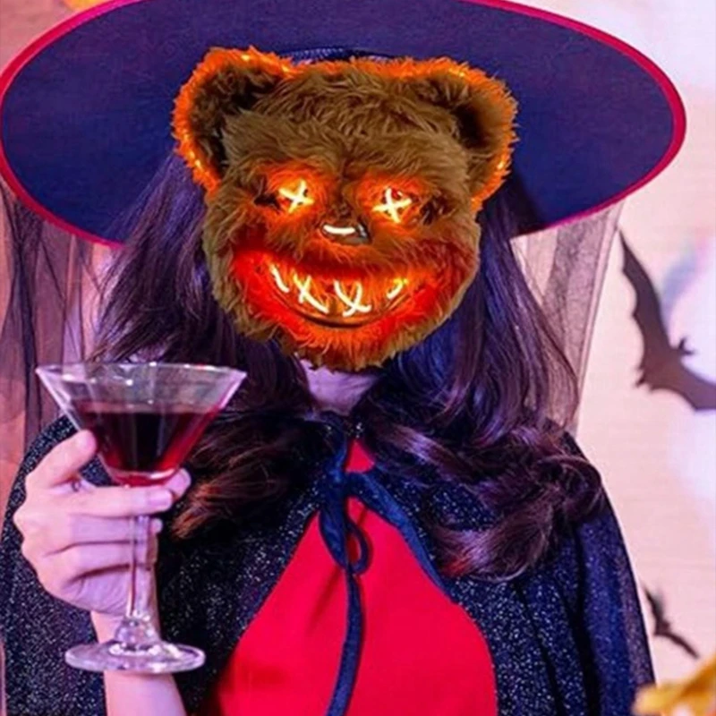 Nova luz led halloween cosplay máscara facial festa mostrar palco maquiagem horror sangrento coelho urso máscara dos desenhos animados carnaval cabeça capa