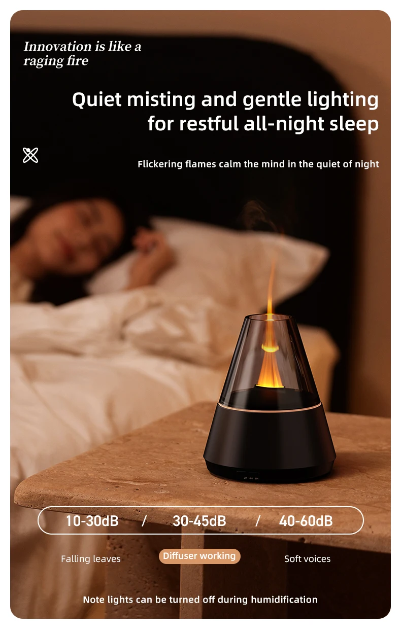 Nova luz noturna de chama simulada colorida com umidificador de ar ultrassônico 150ml vela chama difusor de aroma de óleo essencial para casa