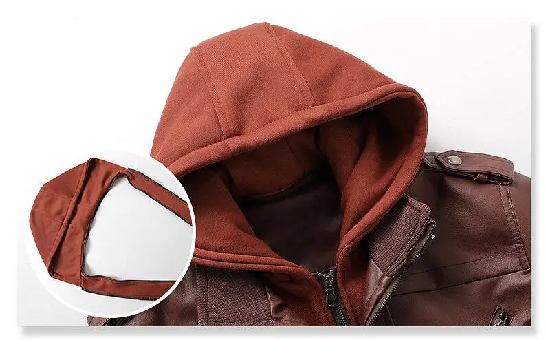 Nova moda masculina street wear jaquetas de couro da motocicleta chapéu destacável jaquetas de couro com capuz fino casacos de couro casuais 5xl
