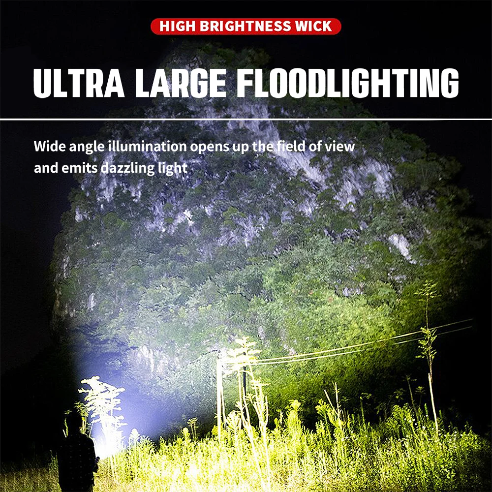 Nova poderosa lanterna led recarregável com função de zoom 5000lm luz de pesca caminhadas acampamento luz ao ar livre