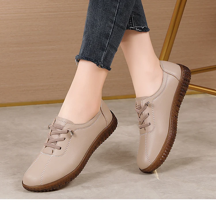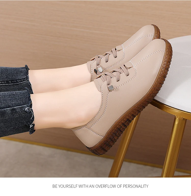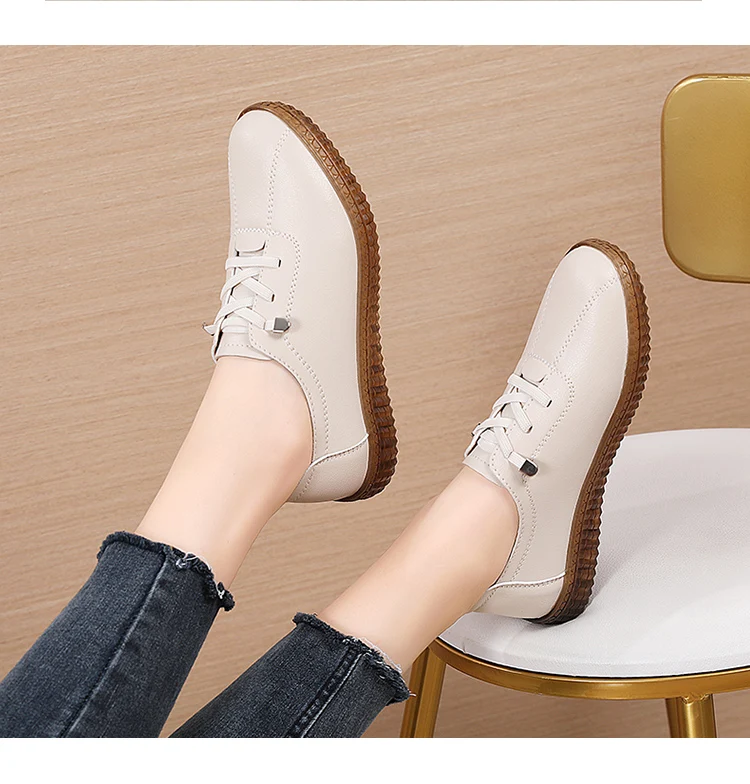 - > Novo 100% couro genuíno moda casual andando mocassins e sapatos esportivos leves para mulher