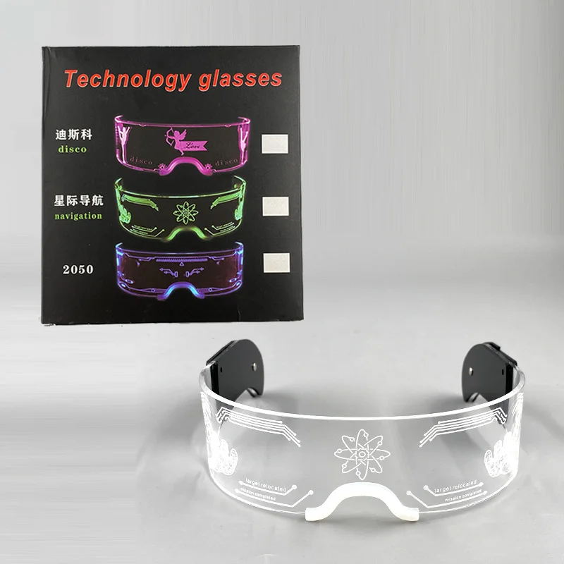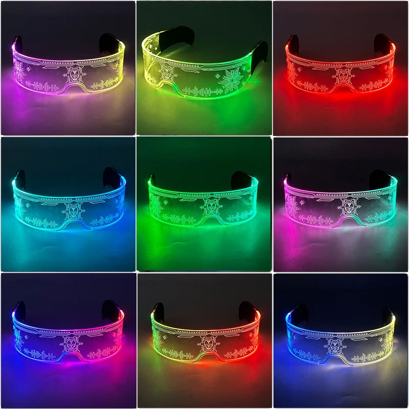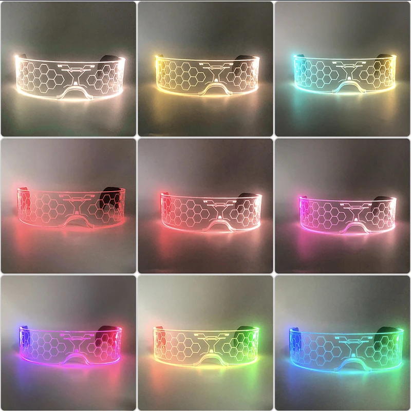 - > Novo acrílico luminoso brilhante cyberpunk óculos led light up festa de halloween óculos bar clube adereços óculos de néon suprimentos